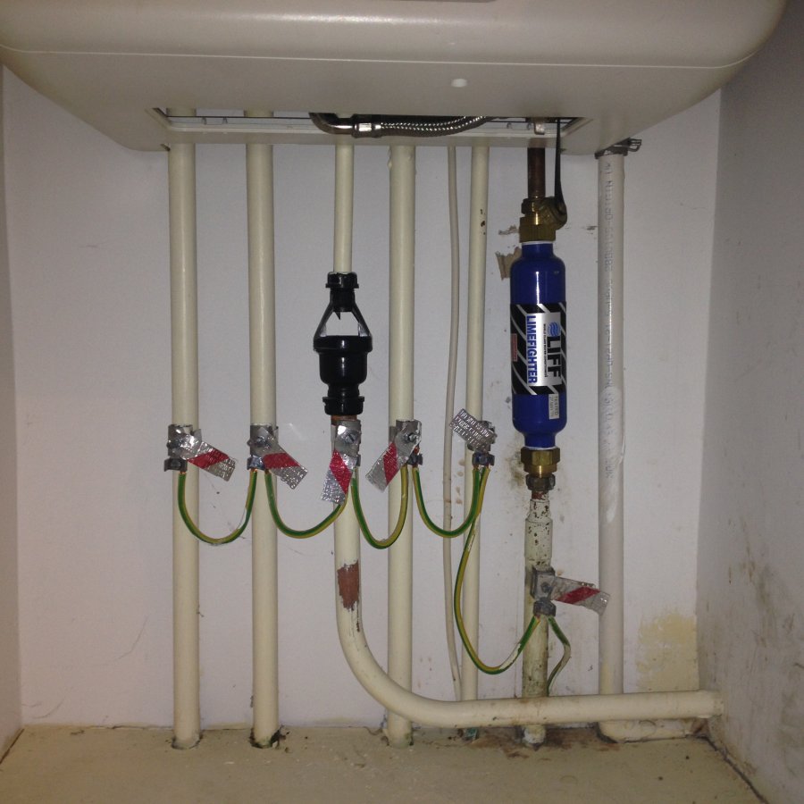 inside cupboard looks like this, plastic pipe (condensate) far right, copper (pvr)central. If I've got that right!
