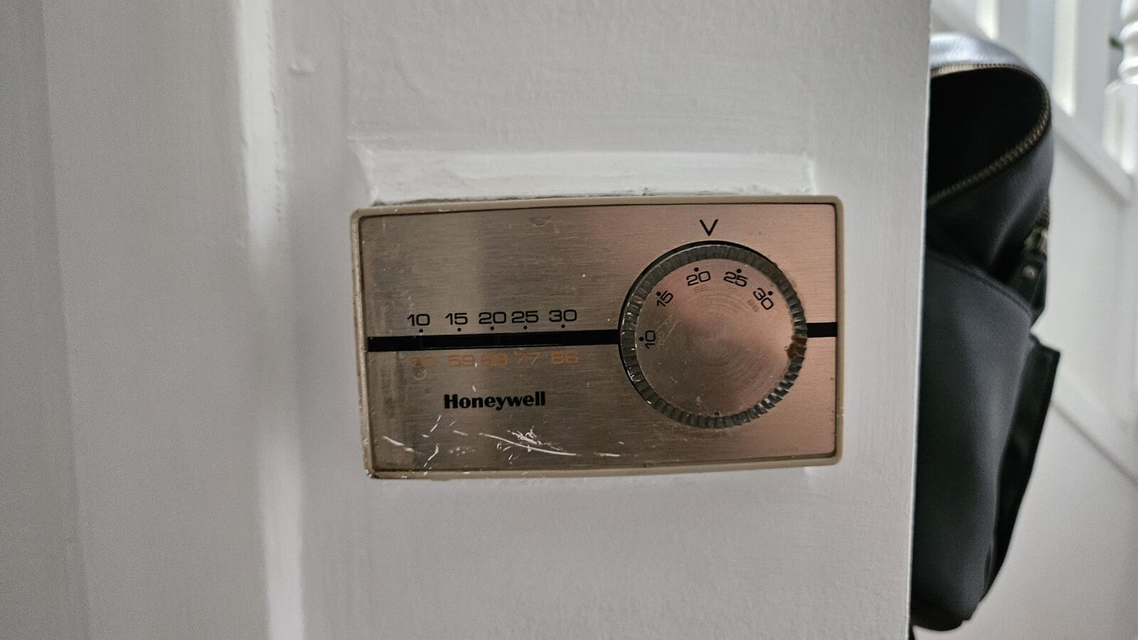 The only other component that looked like room stat (I always thought is not functioning as assumed not powered and a leftover from previous system) is this one attached in the hallway.