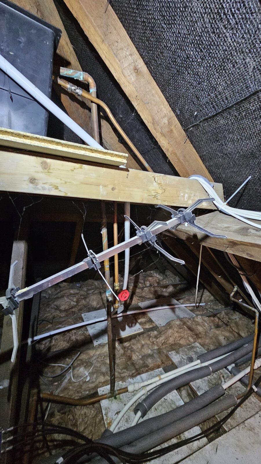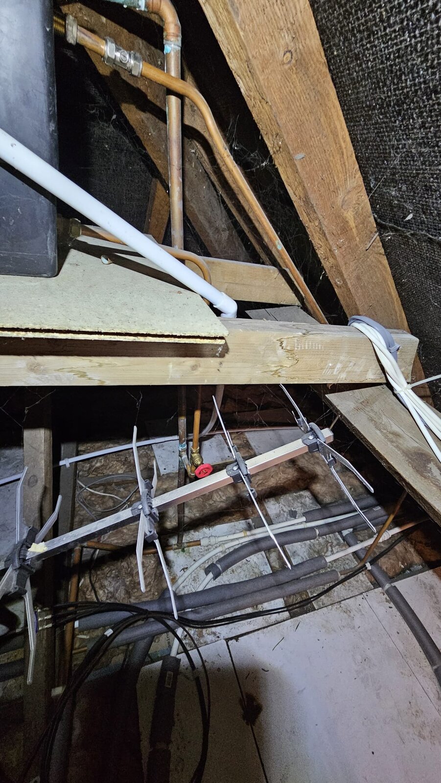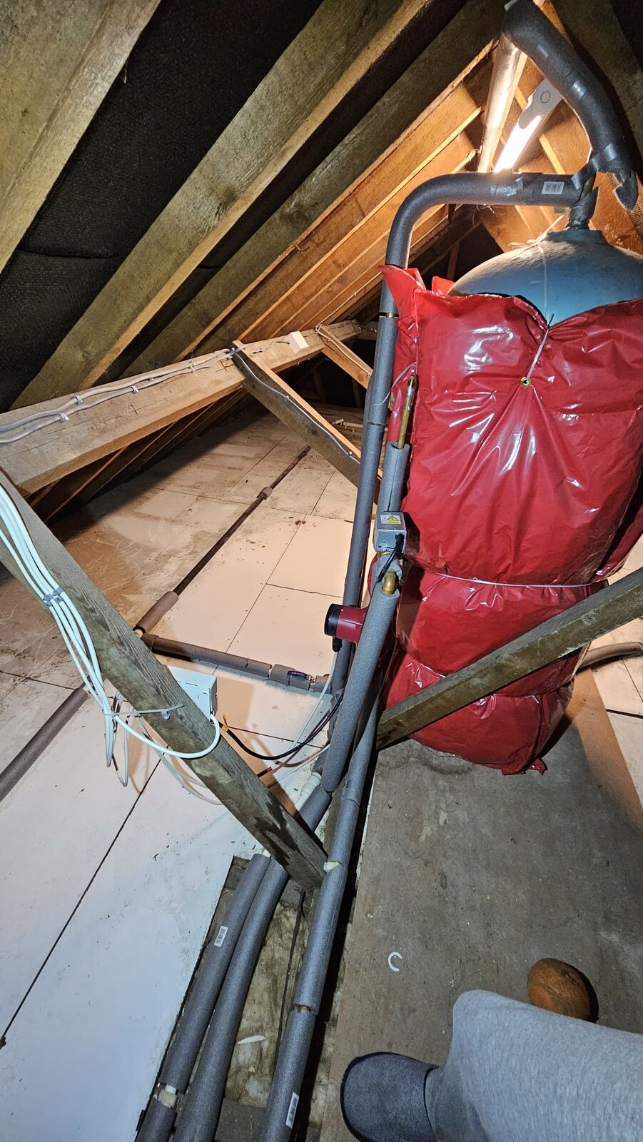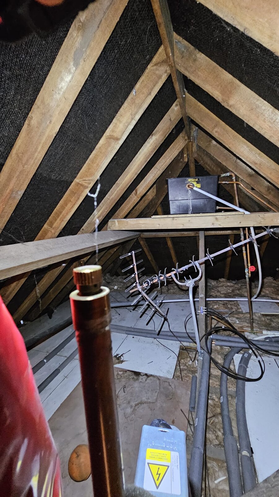 Sorry ,I can't make out from your pics where the F&E cistern is. That large black tank looks more like the cold water cistern feeding the hot water cylinder ??
