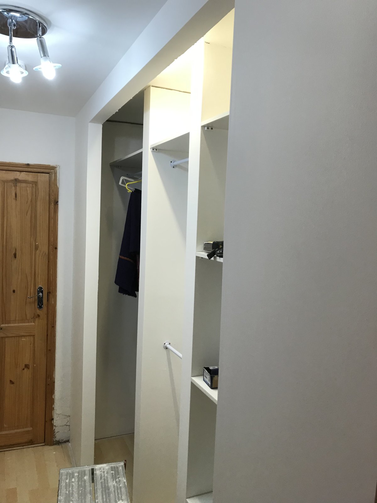 I need to wait 14 days for these doors to arrive but would like to build the rest of the wardrobe in the meantime. I am constructing this out of 3x2 timber studs lined with plasterboard.