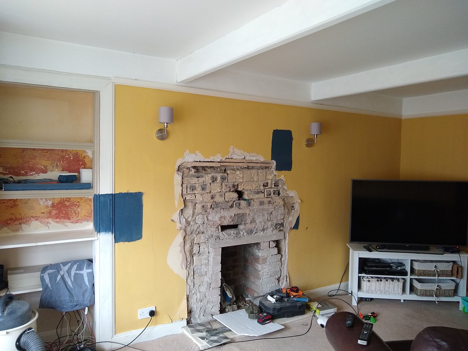 The plan is to install a concrete lintel across these uprights, remove all infill to make the recess for a wood stove, final finish dependant on type of surround we end up with.