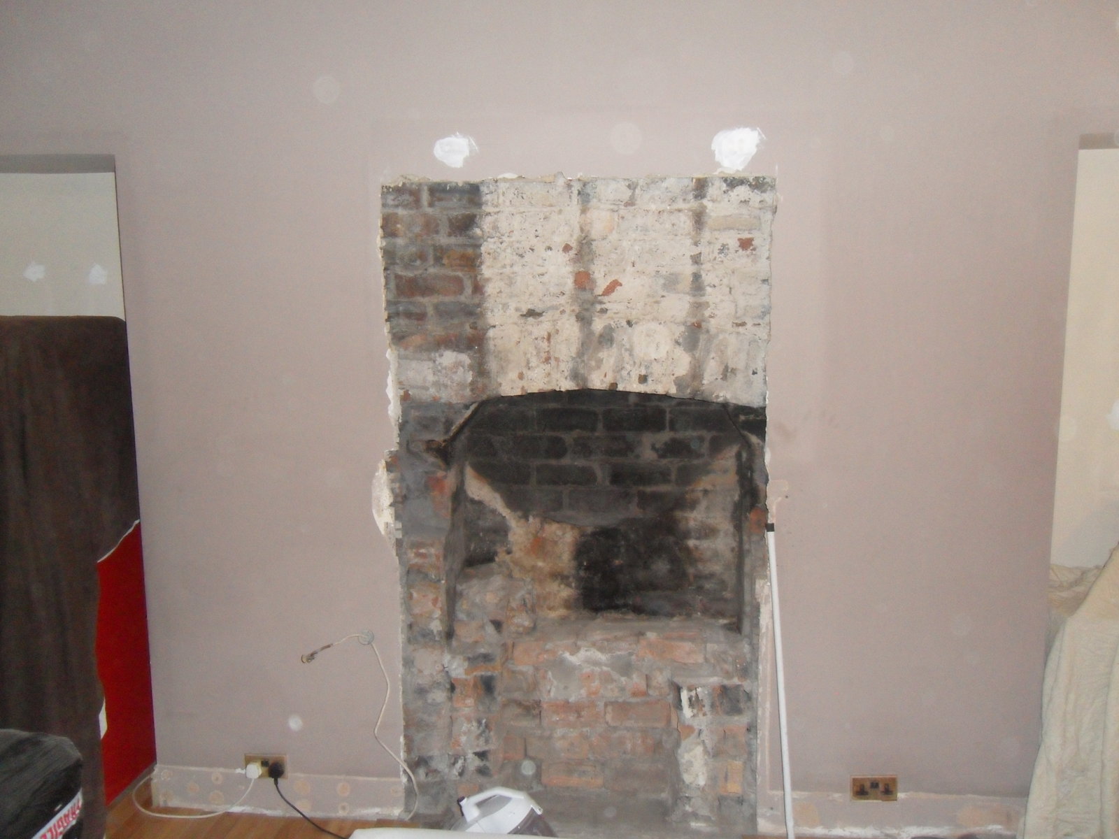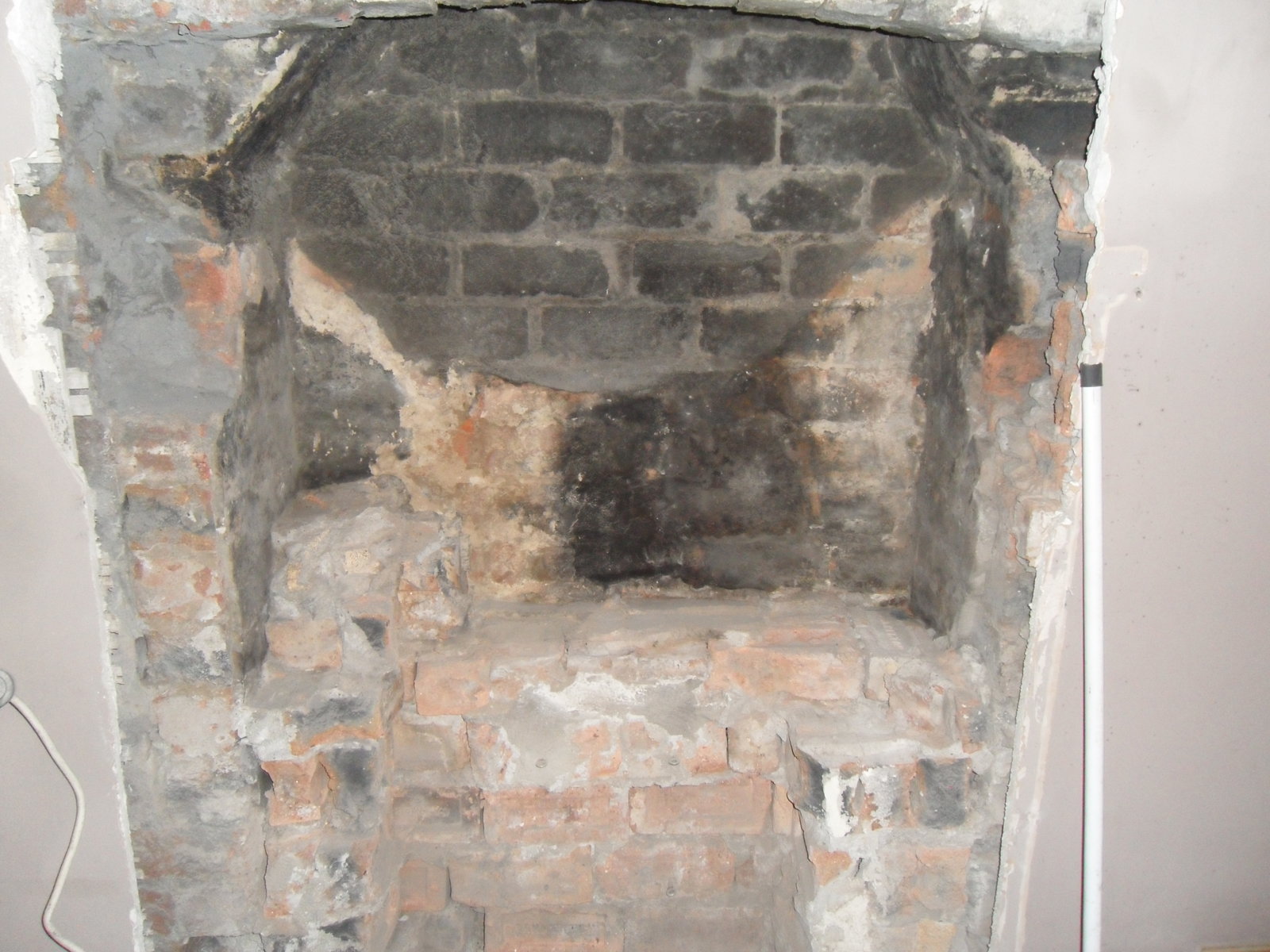 I'm opening up the fireplace in my 1900's cottage to fit in a range - it had a nasty gas fireplace with surround. I've ripped that out, and started on the brickwork behind.
