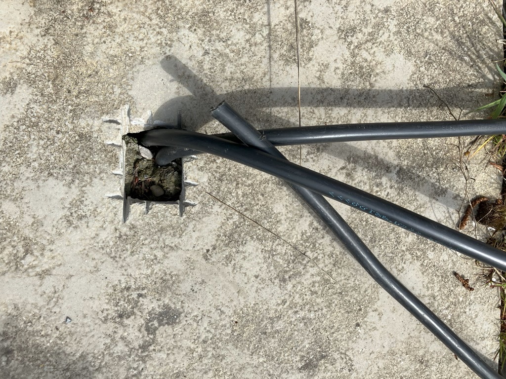 My patio has been fitted with SWA cable poking up from holes in some of the flags - please see the photos.