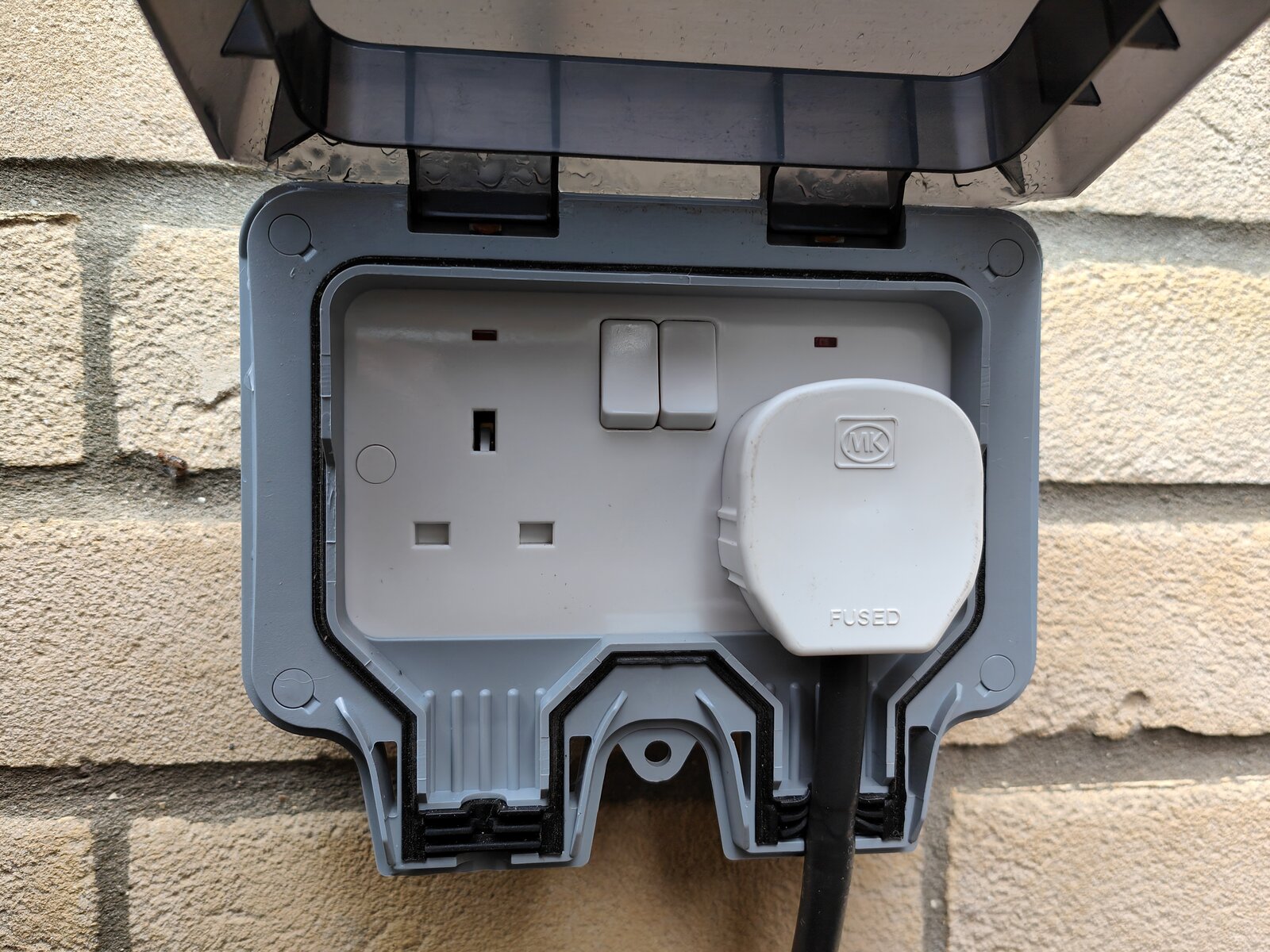 While an outside socket can be connected directly to an indoor socket circuit this is often considered poor practice, since if the socket does end up full of water it can take out RCDs and leave a large part of the electrical installation unusable until it is sorted. It's quite common for an outside socket to be supplied from a switch or FCU.