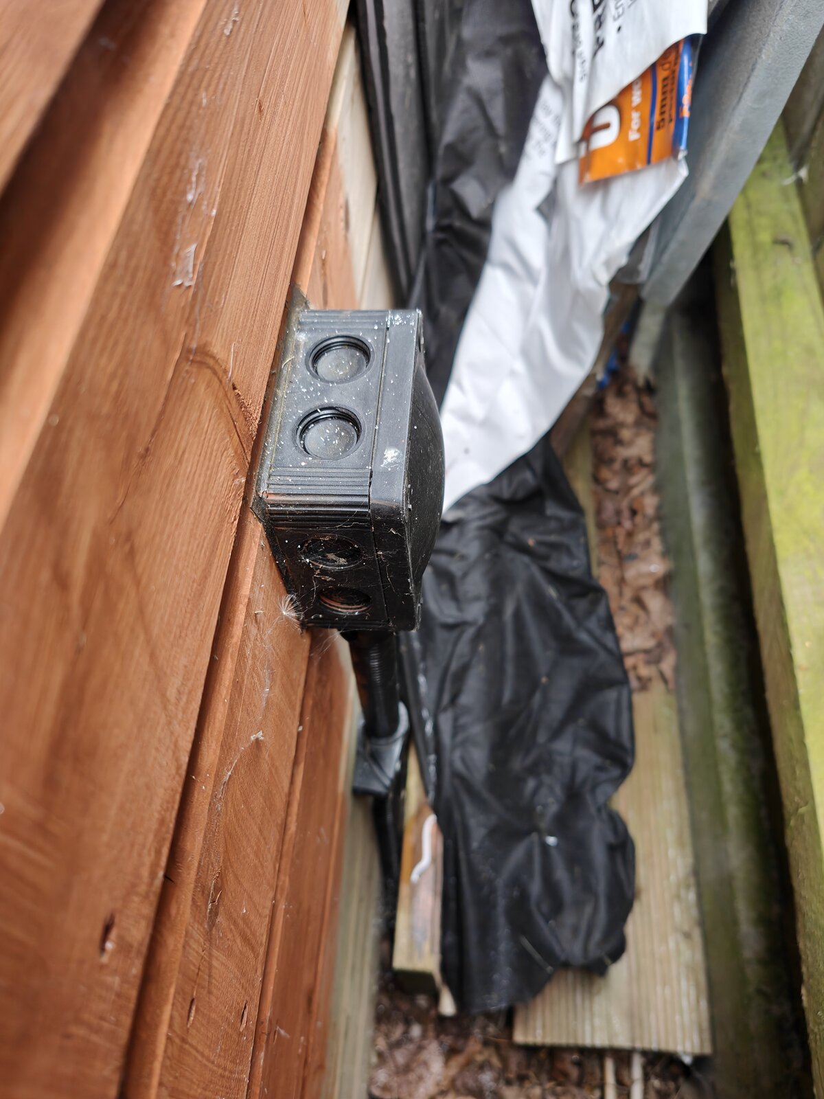 I would say that the most likely explanation is that the supply to the outside socket has been switched off somewhere. It's also possible that a wire has come out of a terminal.