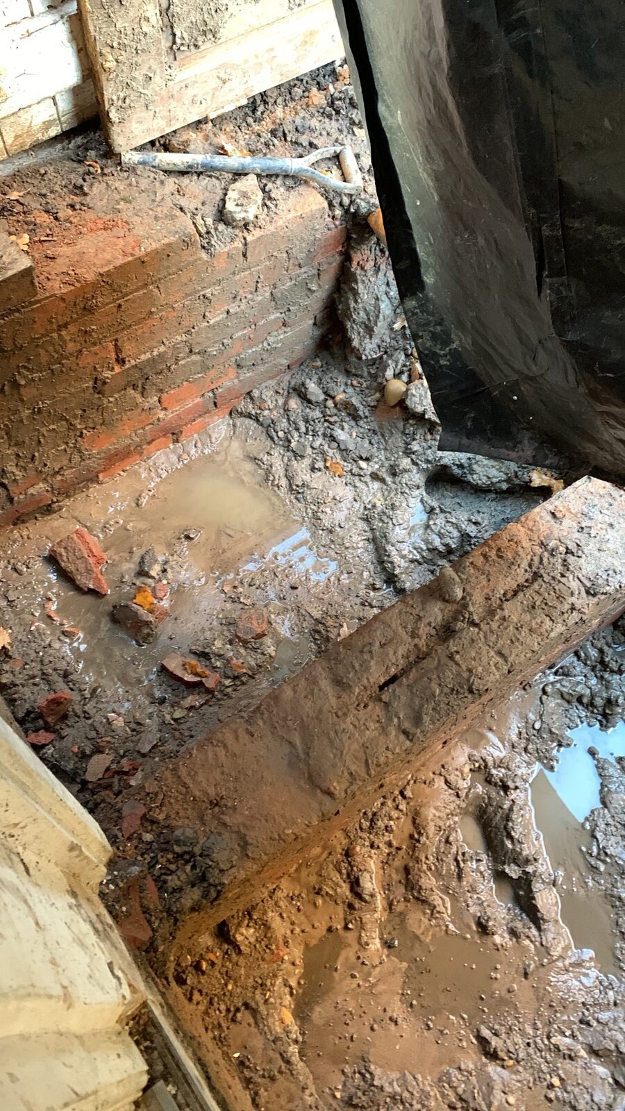 At the start of November, I got some builders to begin work on a kitchen extension. This involved breaking down the downstairs bathroom, with the idea that the new extended kitchen would be built in the same place. Building work however was stopped due to an unknown source of water which kept leaking into the hole which had been dug for the foundation of the new kitchen extension.