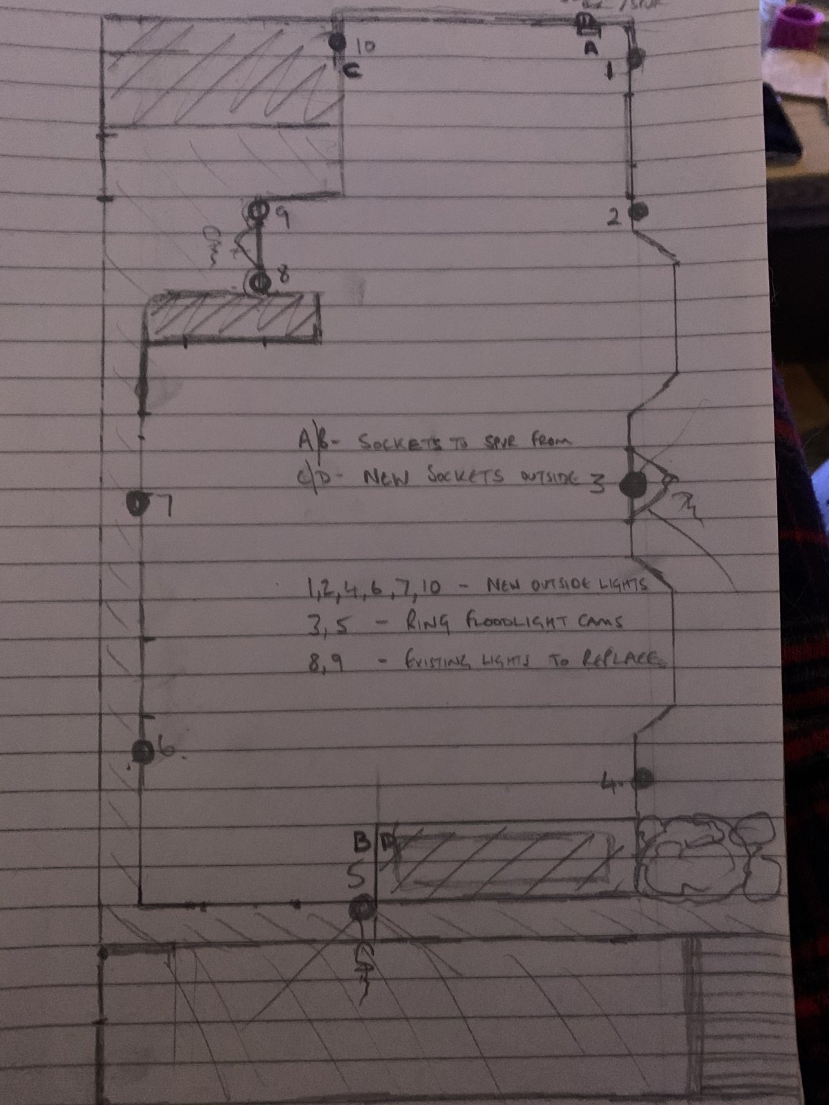 With winter and the dark nights upon us I’m wanting to install some external lights along with a couple of Ring floodlight cameras. I’ll also get some external sockets put in at the same time.