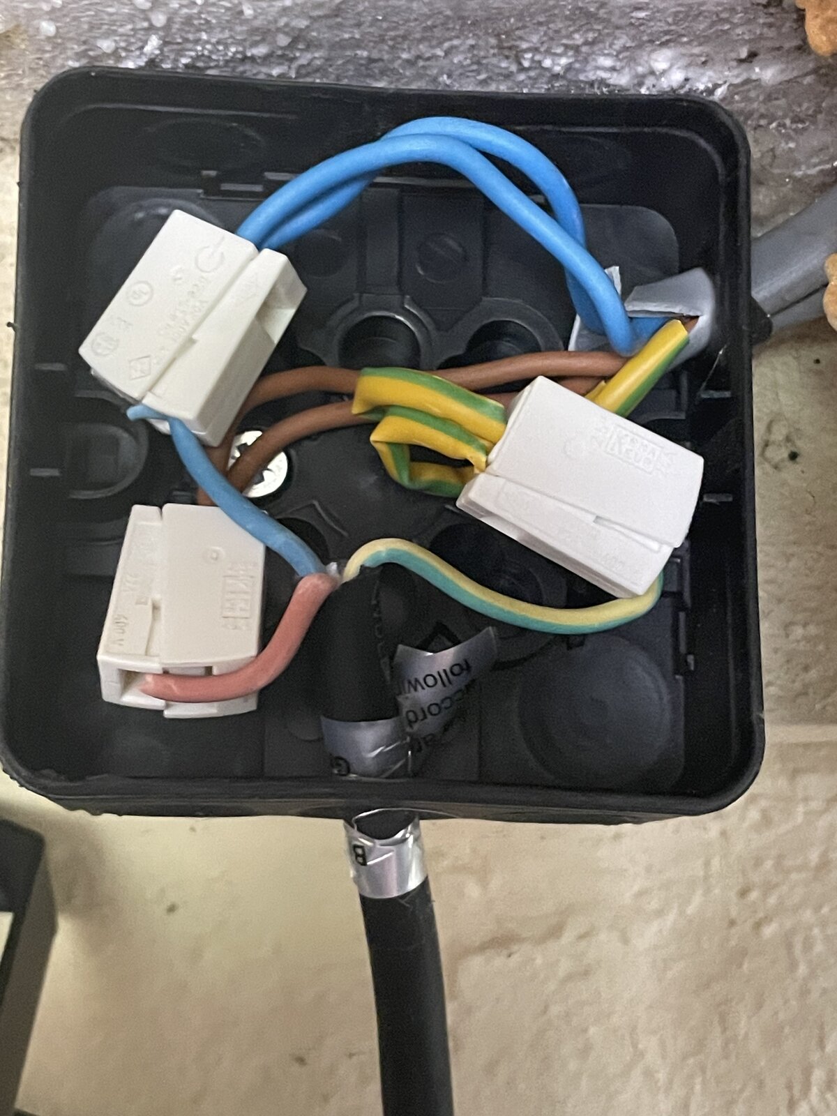 hi all! Hoping for some urgent advice. Single mum here trying to replace all of the outside lights today. Managed all bar one. All of them up until now have had straight forward one set of wires however the one I’m now stuck on has 2 sets of green, brown and blue wires from the house cable. I thought I’d solved it with some 2 wire hole connectors but it’s still not working! Any advice welcome as this is driving me mad now and I do not want it to defeat me!! Please see attached photo…!