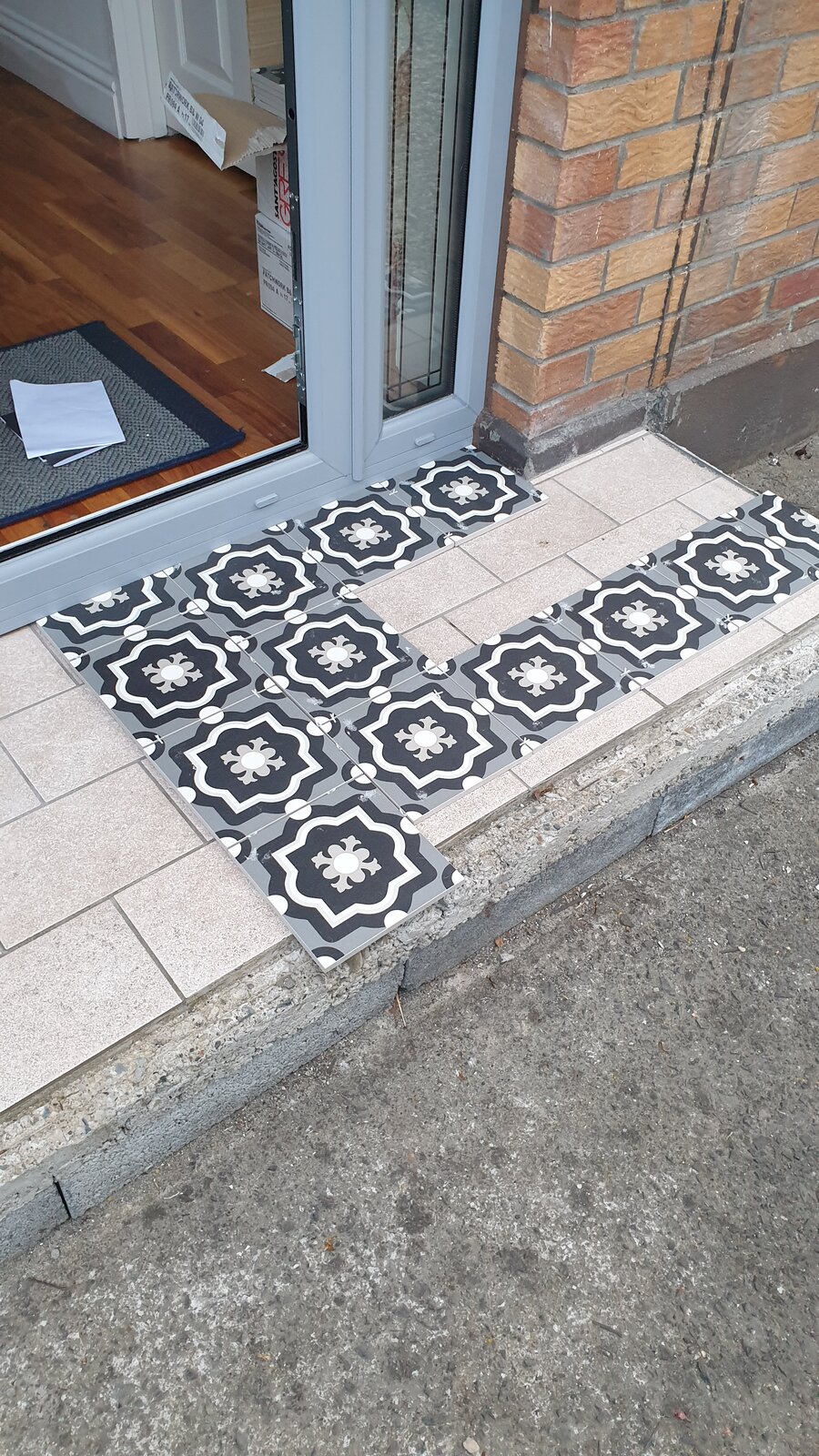 Hi, I have an existing step where an old porch used to be that I want to tile. There's a slight slope away from the door except right at the door where water would sit. Can I tile over the tiles and use extra adhesive at the or remove tiles and redo with concrete then tile? Thanks