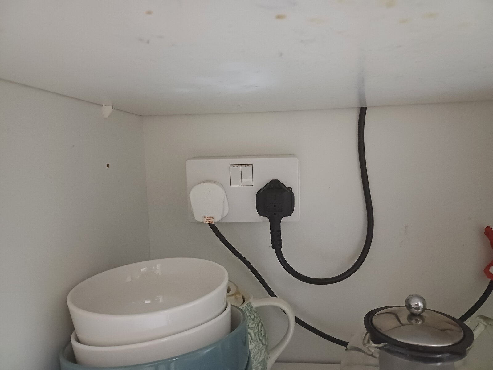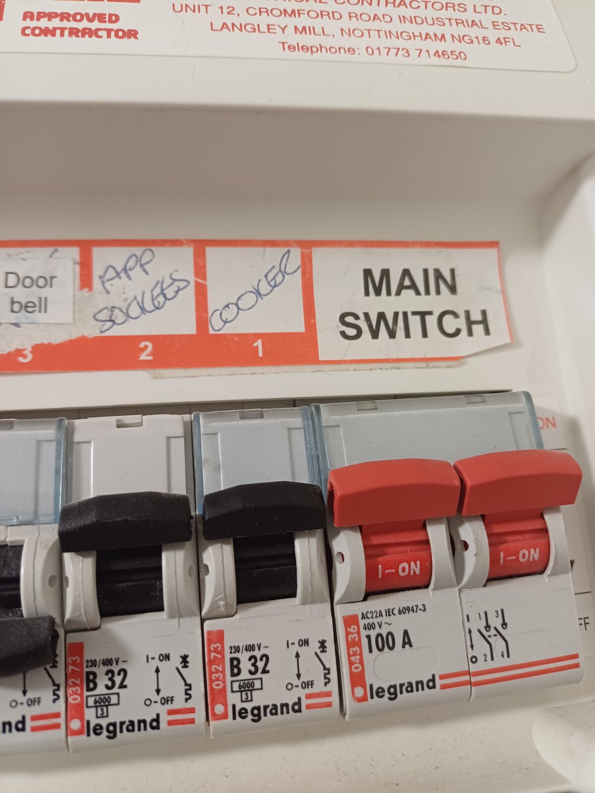 this socket is on a different circuit to the rest of the kitchens sockets and has a 32amp switch on the breaker. along with a on/off switch located above the worktops.