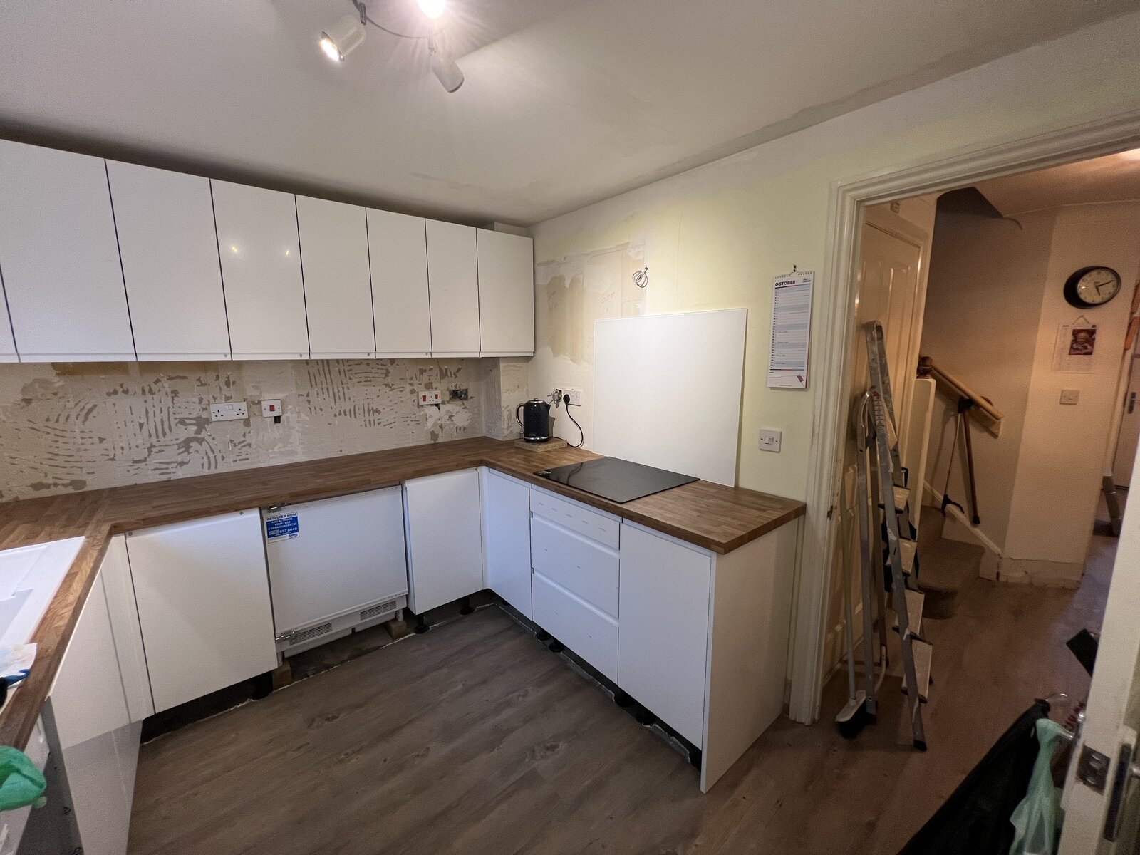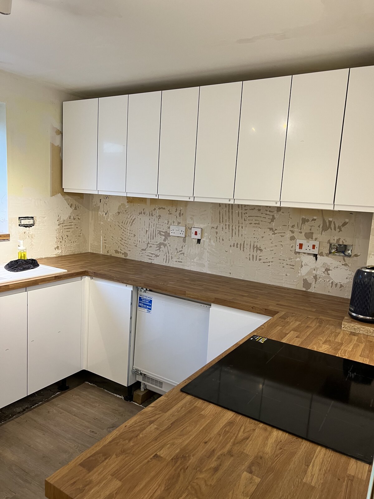 I have a section of wall - one under the cupboards in. Rather than spending money/time dealing with getting it perfect, as it’s to be painted - I was going to overboard.
