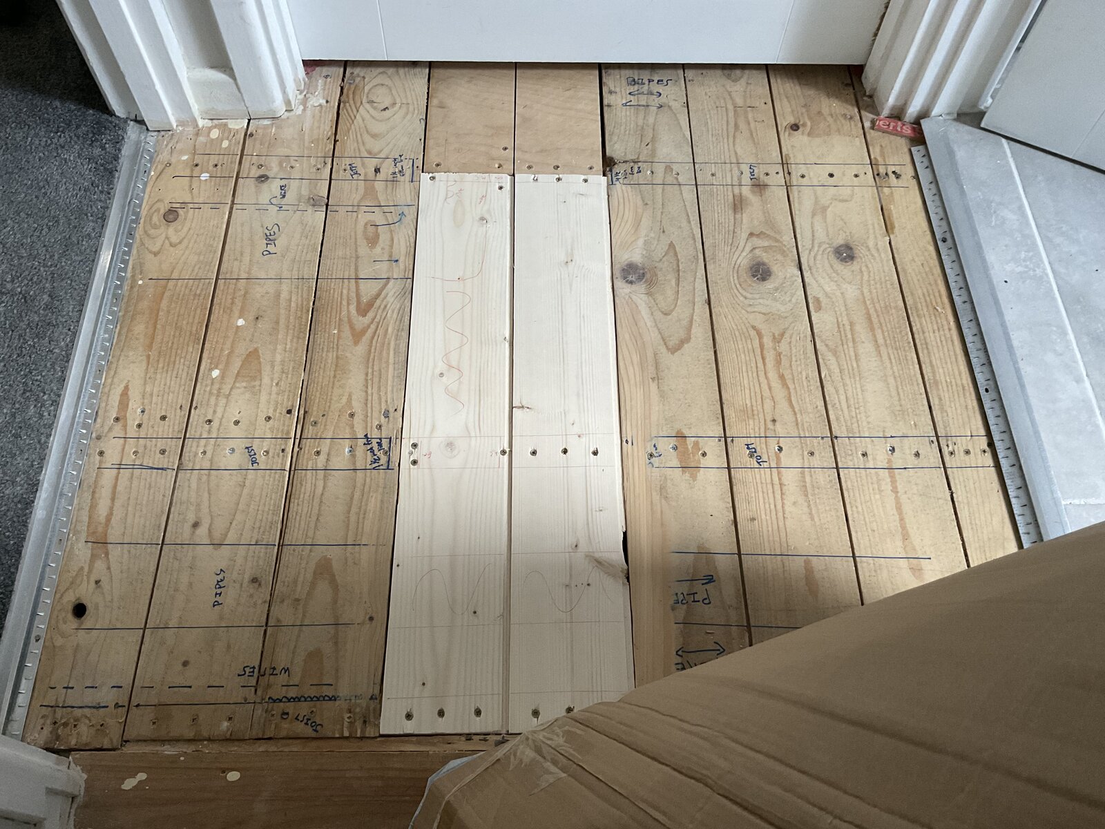 I have screwed down the floorboards for a 1 square meter landing that opens to two bedrooms, the bathroom, and the staircase. This has eliminated the creaks, but there are gaps. My plan is to overboard with 6mm plywood, but from reading online I have seen NoMorePly concrete fabric sheets and want to know if this would be a suitable alternative.