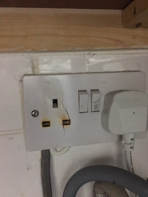 Yesterday the tumble dryer stopped working and would not restart. I moved the unit and found both the plug and socket had suffered heat damage (phots attached).