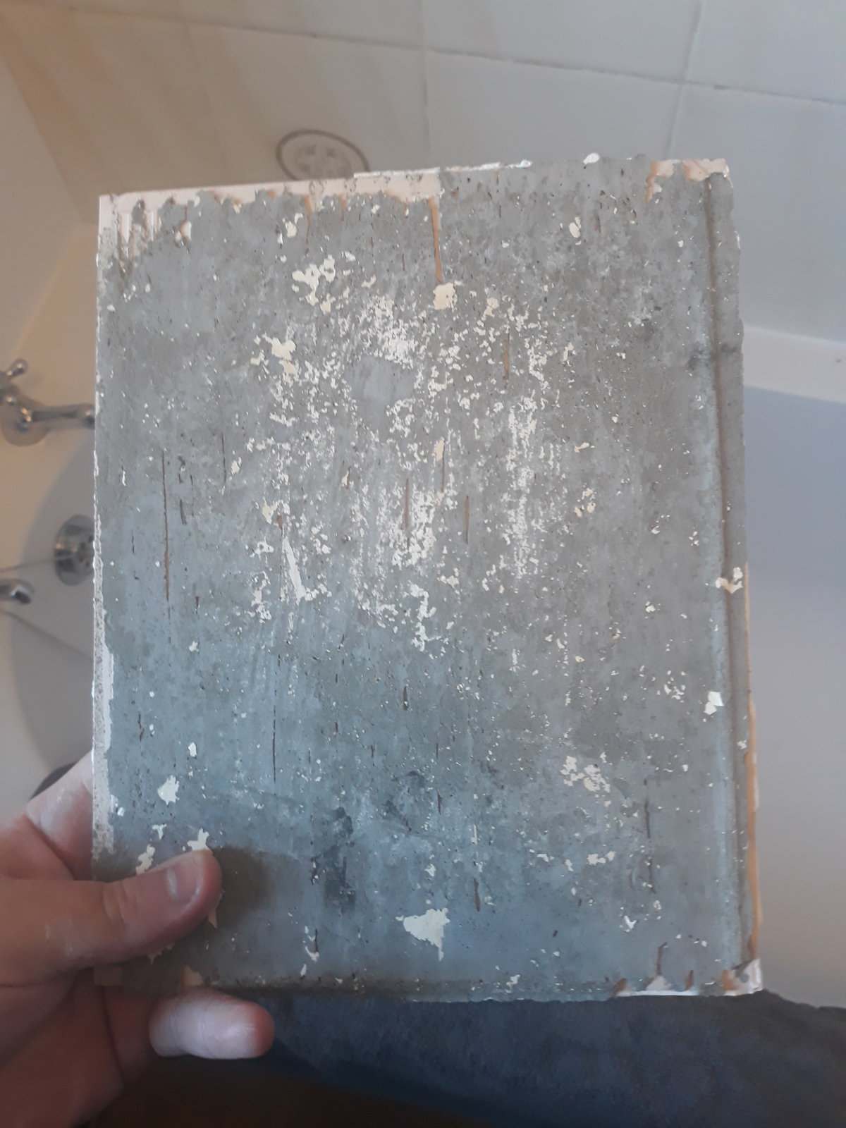 We had this bathroom done about 10 years ago by a tradesman, i am not sure what went wrong, whether it was the wrong primer or cheap adhesive or a combination of both? Maybe some water over the years has got behind the tiles and upset the adhesive?