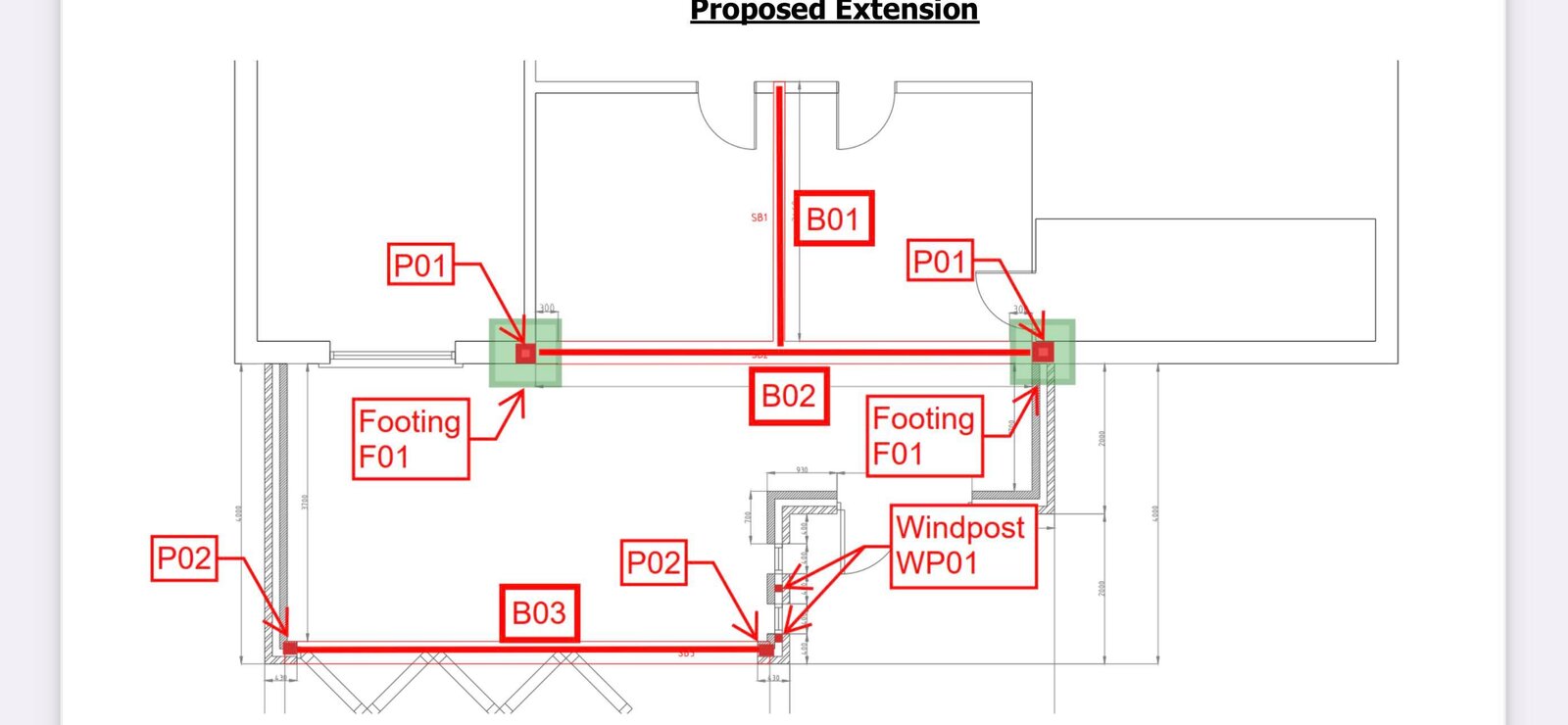 The SE has proposed 1mx1mx.3m RC35 pad foundations with A393 in the bottom(in green) for the goal posts(P01). As the pad stone to the right hand side will run in to the new strip foundations what is the best solution, use RC35 for pads and strip or shutter off use Gen1 for the strip and if so is rebar required to connect the to the padstone foundation.