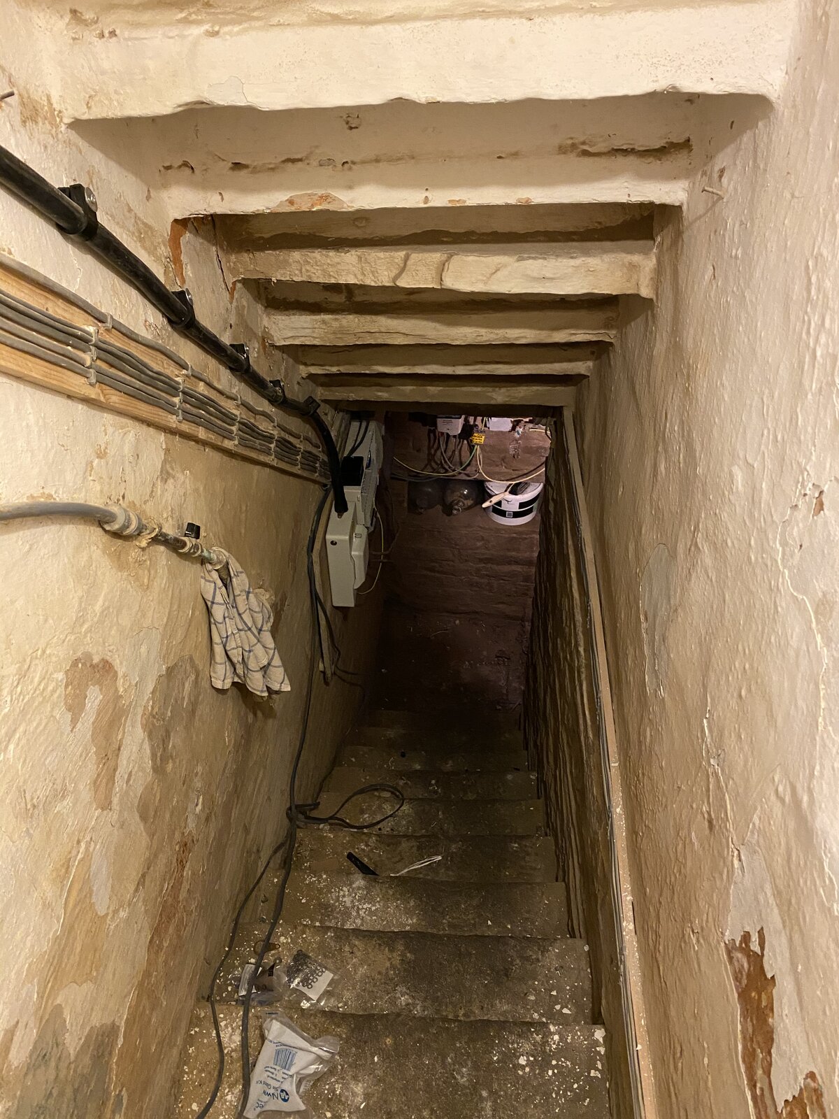 Below the stars is another set of stairs that goes into the cellar/coal chute area which unused but well ventilated.