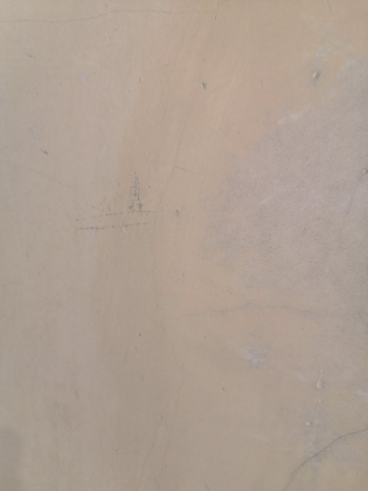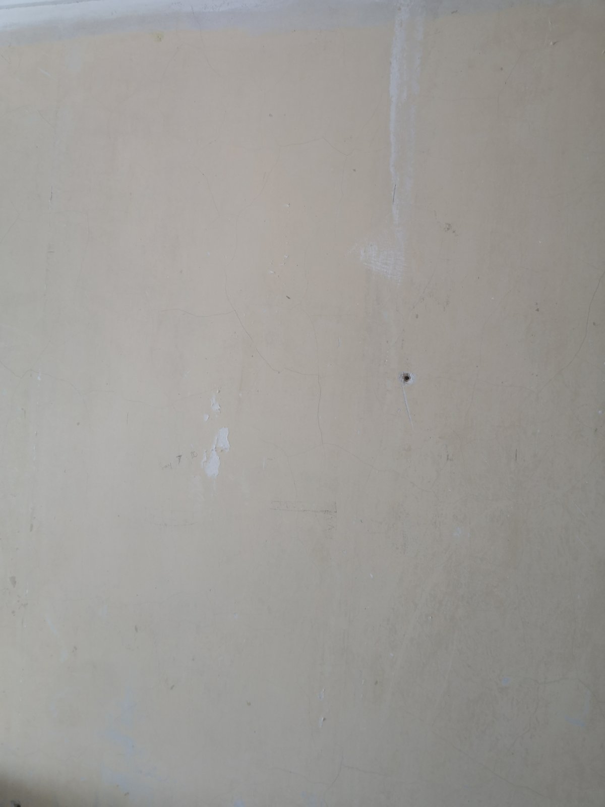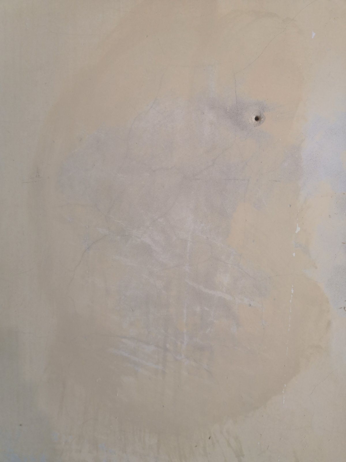 In the second picture you can see from left to right, the yellow paint, the paint when wet is the darker section and the grey on the right is the plaster.