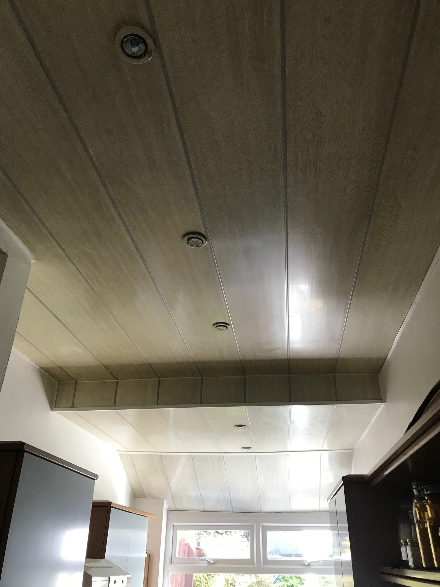 One of the things I want to do is try and paint the horrible old plastic(!) ceiling that's in there (see pictures attached).