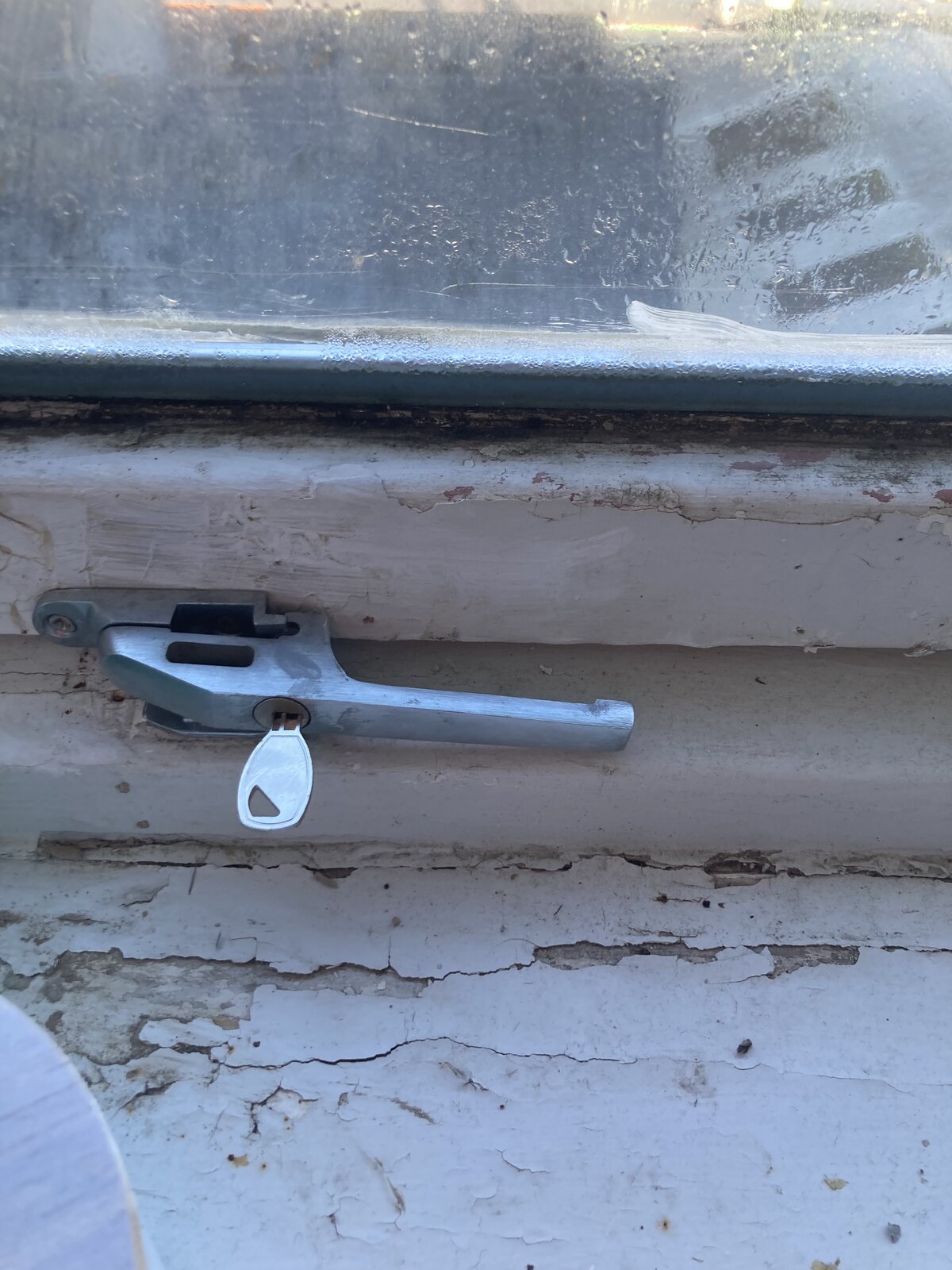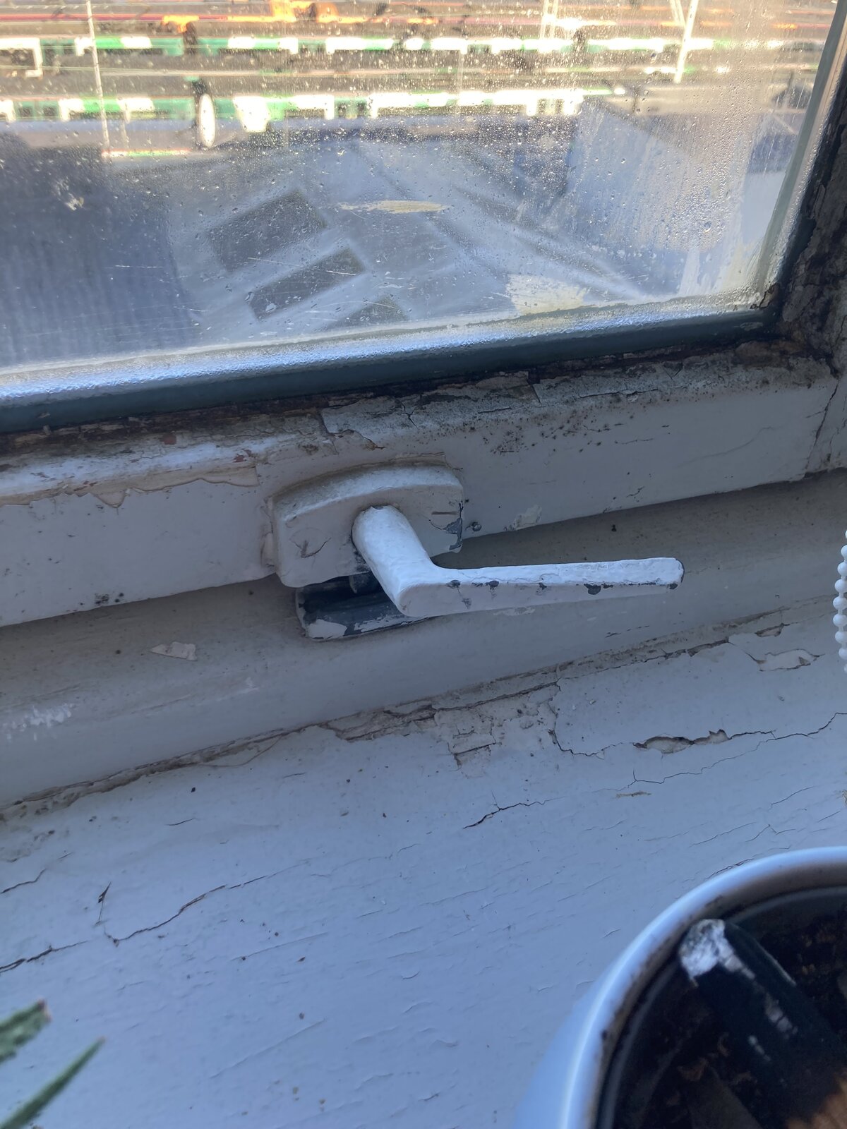 The window and frame are in pretty poor condition, I’ve been waiting for the local authority to fix it before I paint it. They’ve done it now but it’s a mess so I need to repaint it and fit nice handles