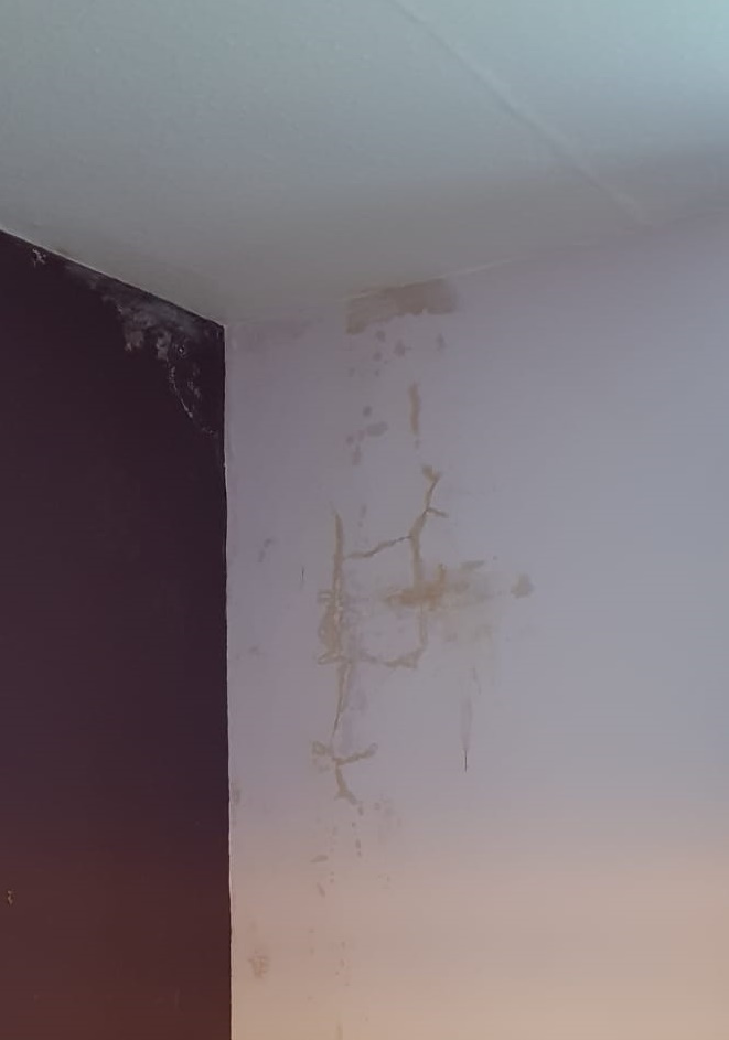 In the living room of my son's middle floor tenement flat, damp appeared in the corner of an internal wall, external wall and ceiling. Turned out that upstairs had a rising mains leak which was eventually fixed late 2022.