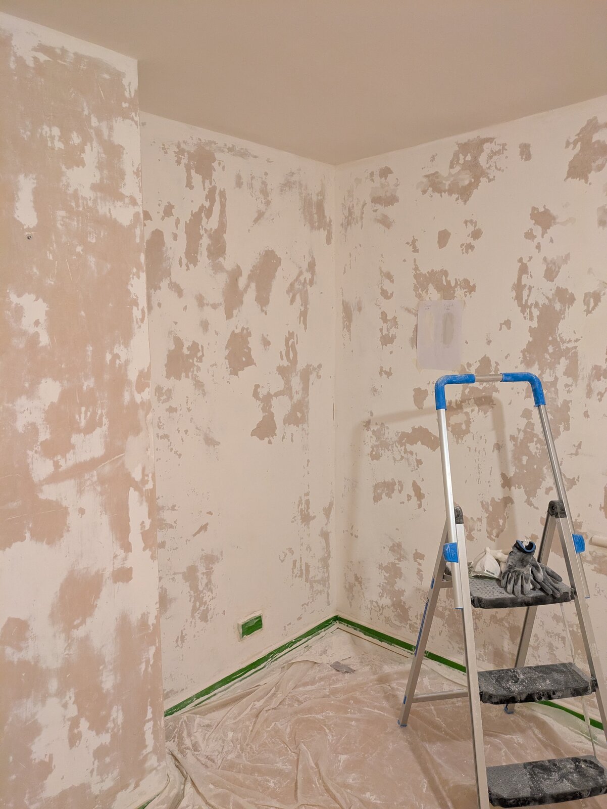 I've just moved into a new property and decided to remove the wallpaper using a wallpaper steamer rather than paint over the existing wallpaper. However the surface below is a combination of paint and areas of exposed plaster (photo attached). Can I just sand and apply multiple base coats or will I have to apply a joint compound to fill the areas with no paint?