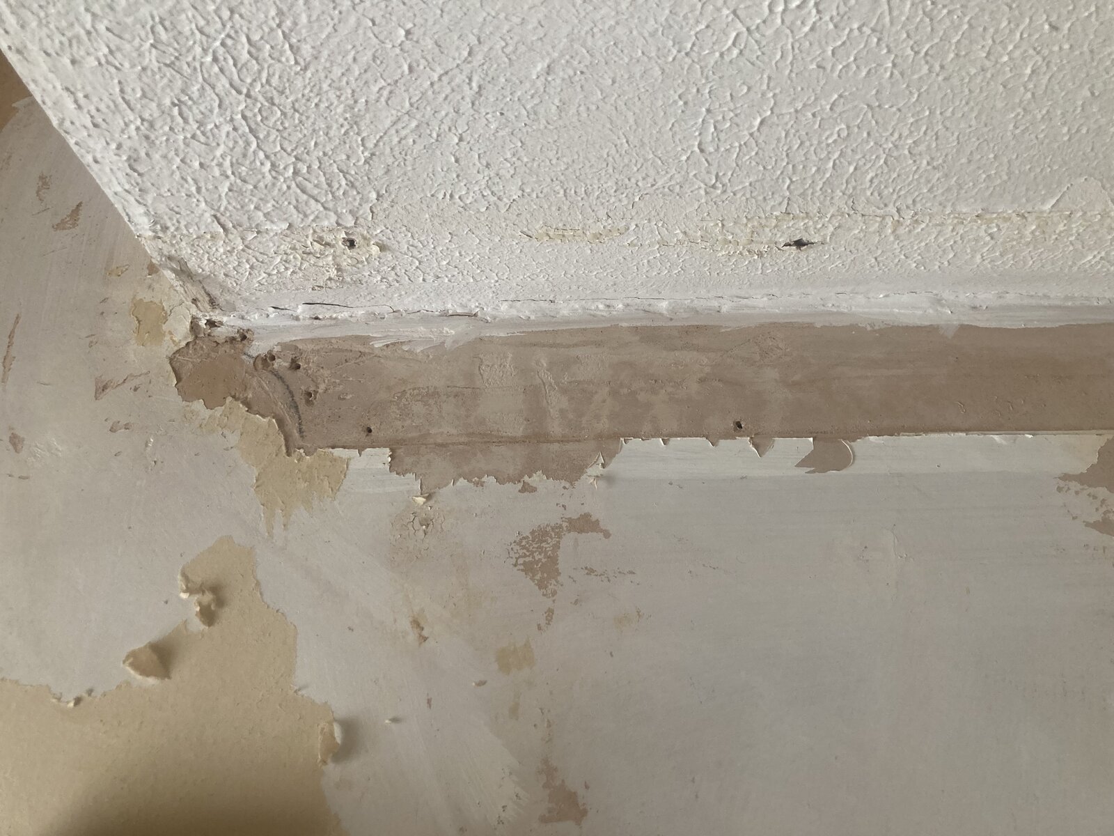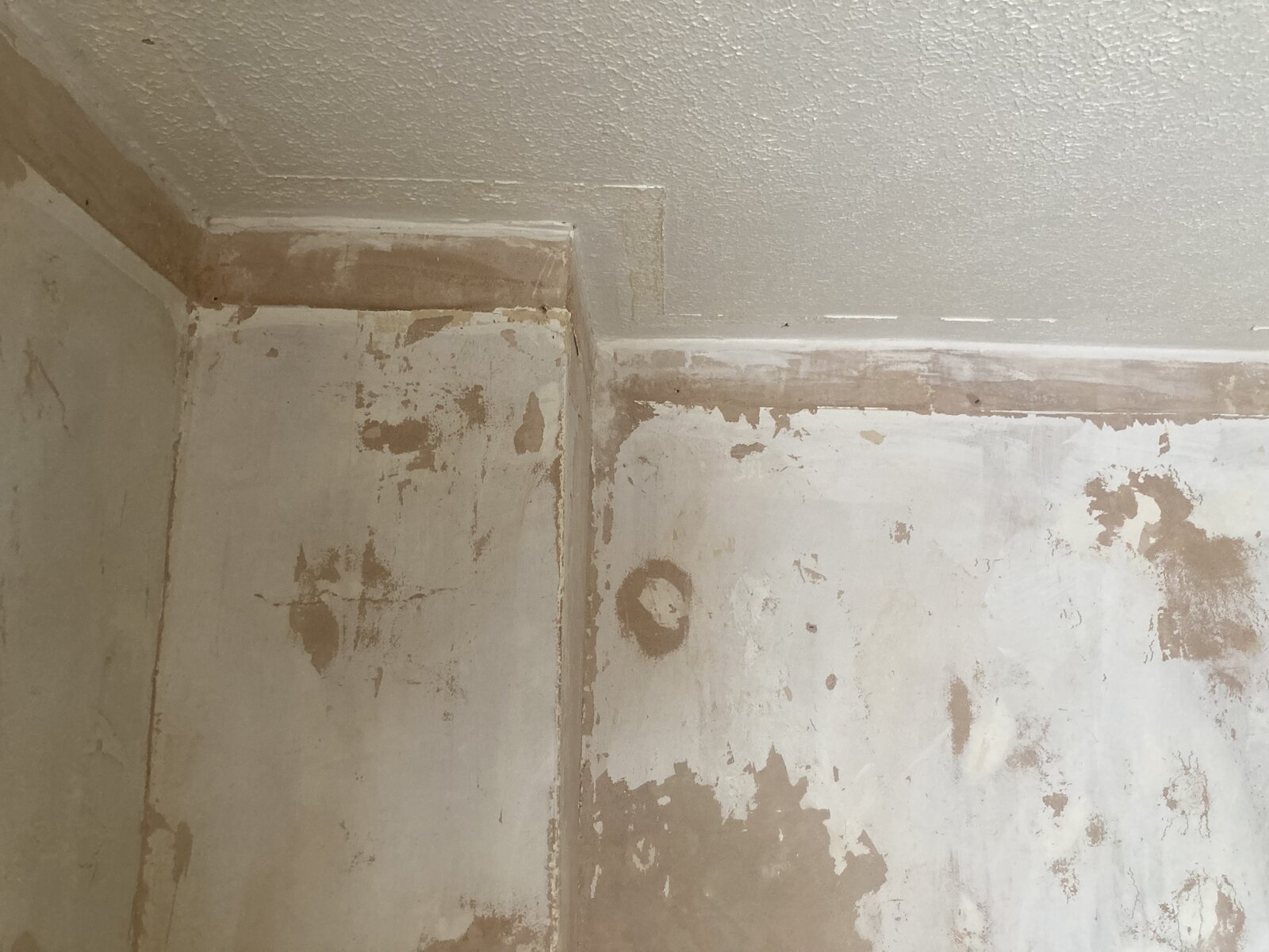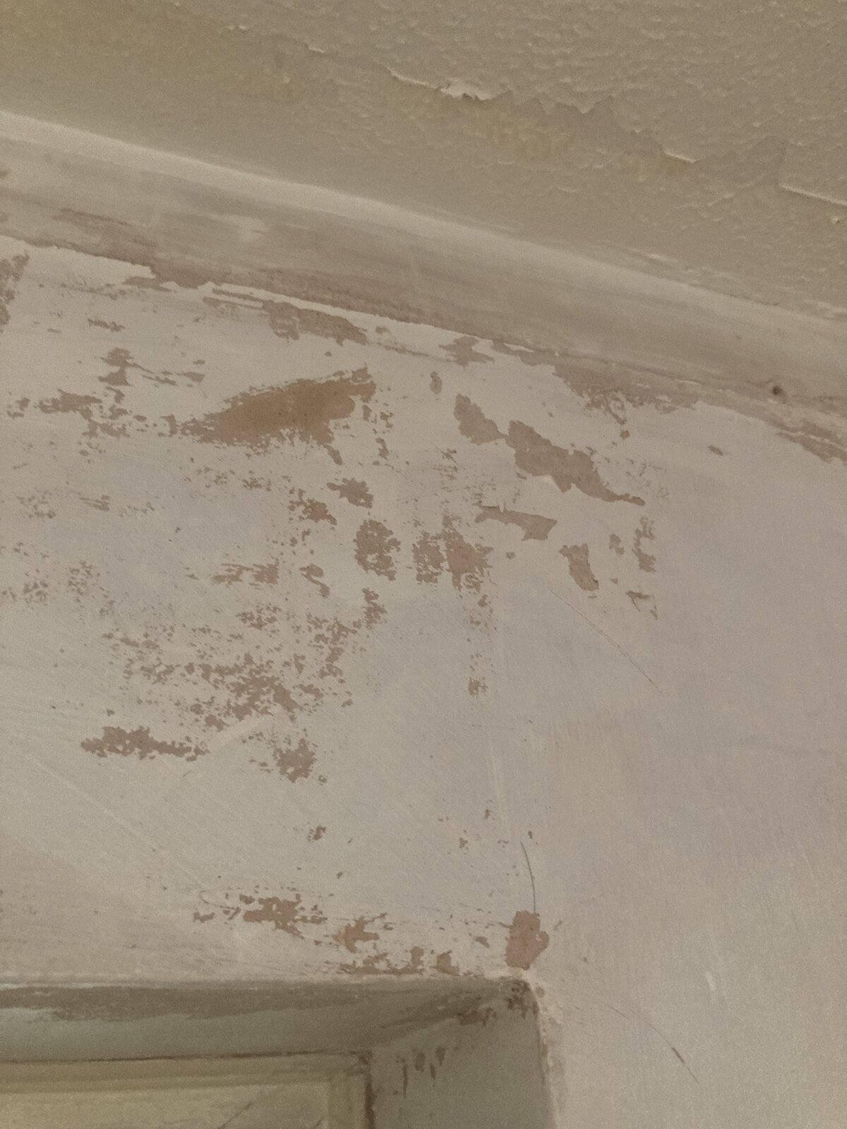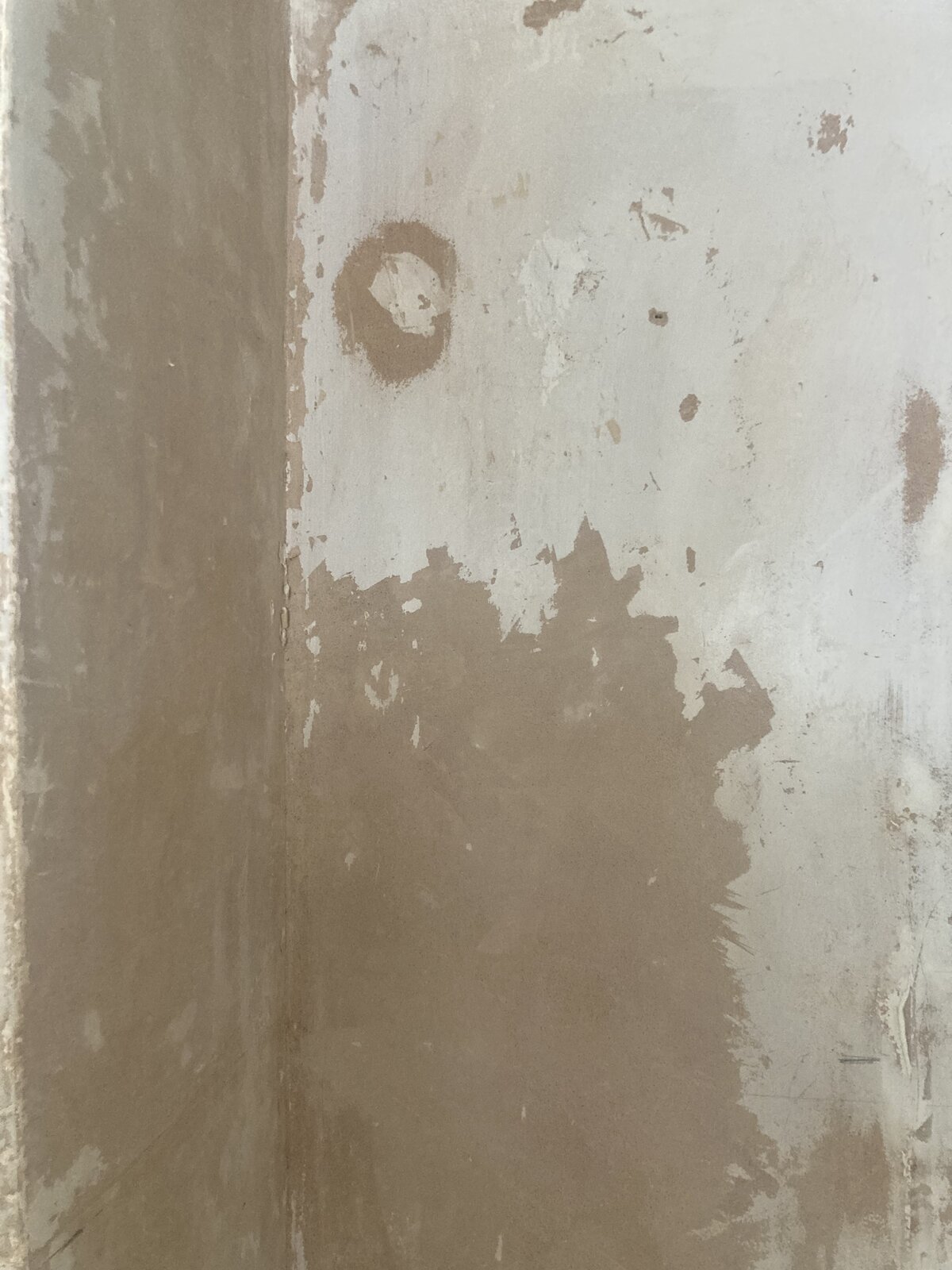 They were previously wallpapered. This has been taken off which shows most of the wall previously having had a coat of mistcoat and a section off the wall having bare plaster. The wall paper was taken off via hot water not steaming and where there is bare plaster it came off in one go.