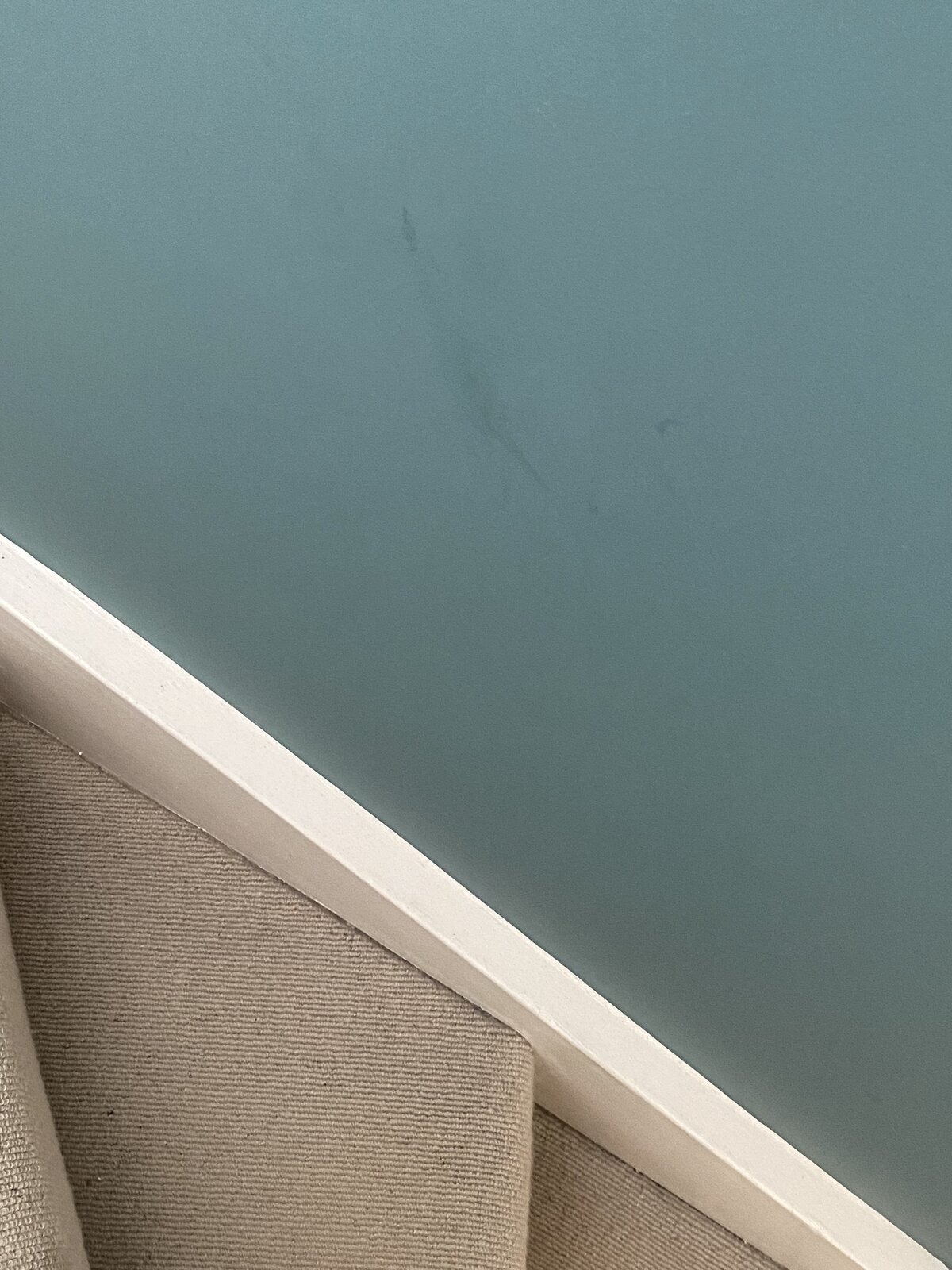 Yes, it is sorry. It’s quite subtle. These two photos might be better - a comparison of two in my house. The teal is crisp and seamless. The one in question almost looks like I haven’t painted the top of the skirting all the way to the way (even though I have) - like there’s a bit I missed. It strongly glows where they meet - not the seamless transition of the teal picture.