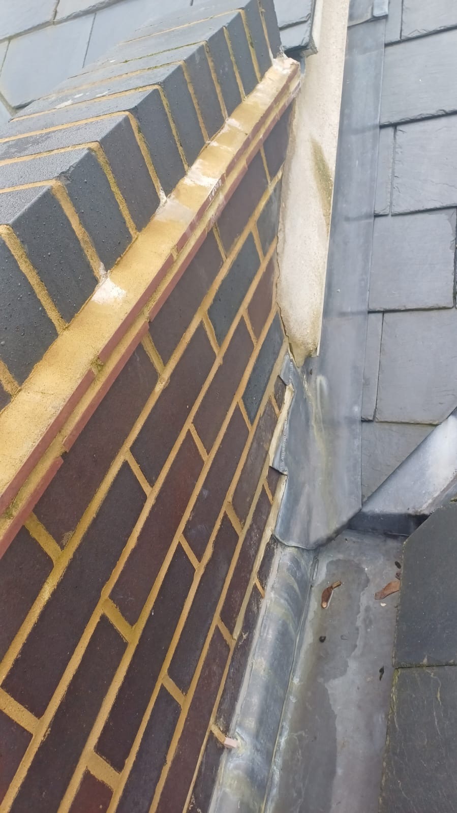 Hi there I have been having some slow water ingress that’s causing some mold to form. The cause appears to be be damp coming through the parapet wall between myself and my nighbours house. We both had extensions at the same time, but where I used a builder he did his himself, but he did use a professional roofer for his roof. My neighbour is an extremely difficult person to deal with, and He insisted on building the shared parapet wall so I have no comeback to my builders on this and I even paid another roofing coming to redo the part of my roof that is by the parapet to ensure it’s not that as my nighbour was claiming it’s my roof that’s at fault. I have photos of where it appears to be coming through from his side. The houses step down on the street hill and My side is covered in lead to the top but as his house is lower he has much more walk to cover and so has a lot of bare brick showing. can I have some opinions on if this is any good? To me the wall looks like it should be rendered or wrapped. The wall stays soaked even when there’s been no rain for days and only ever looks dry in summer. This has been going on 2 years so any advice is appreciated. P.s the worst of the damp appears to start where the cement is on the left where the roof pitch comes down