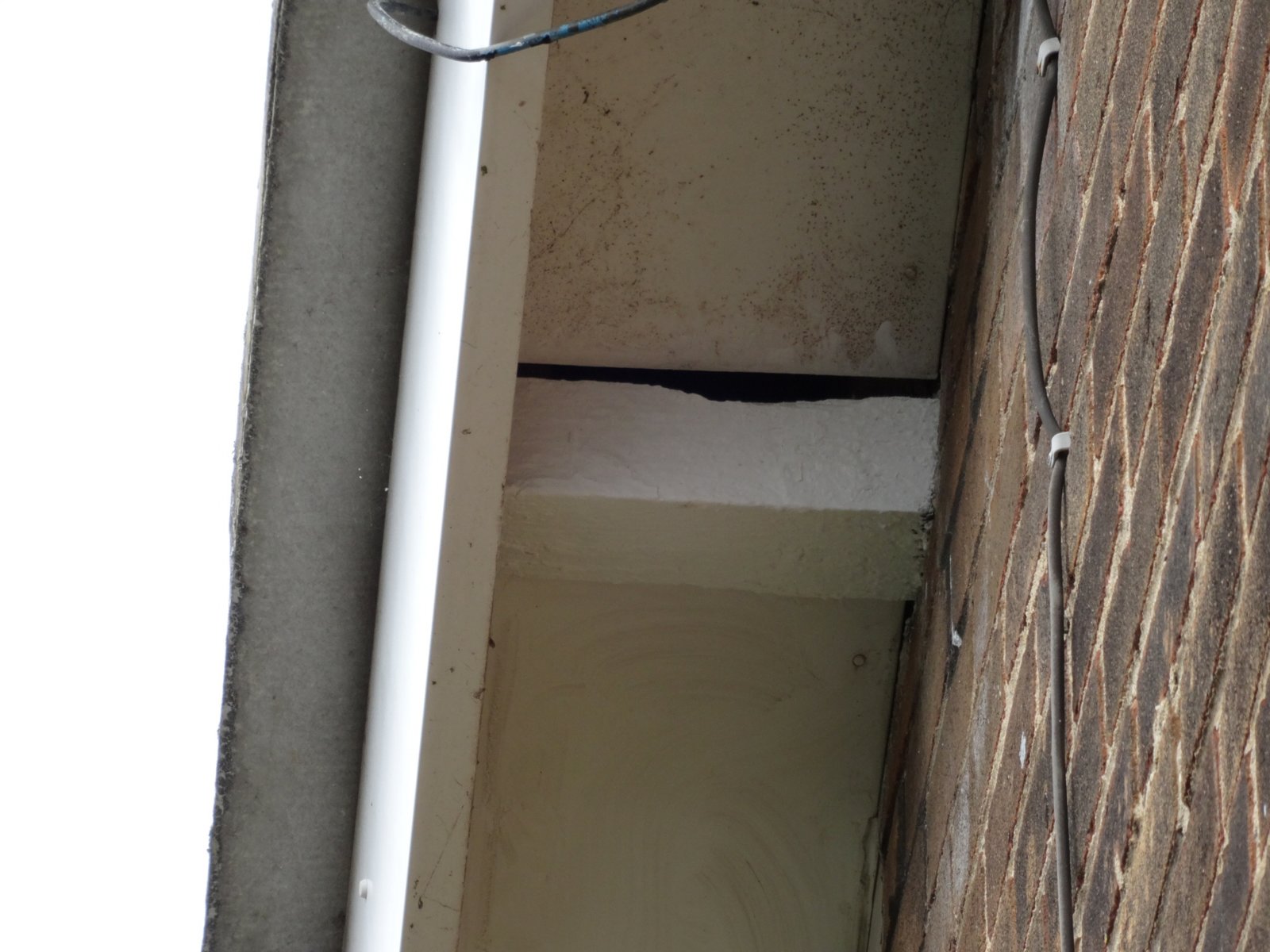 One of these jutty out bits had a piece of timber missing so I thought I would investigate further. The soffit is cut too short so I was able to get my hand in. The middle of the top of the timber seems crumbly and soft inside, but I can't tell how extensive this is, I nearly trapped my hand as it was.