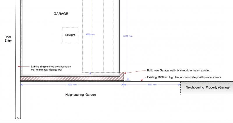 The conflicting advice centres around the rear boundary wall. This single-story freestanding brick wall continues from my land across to my neighbours land and forms the boundary between our land & the rear entry.