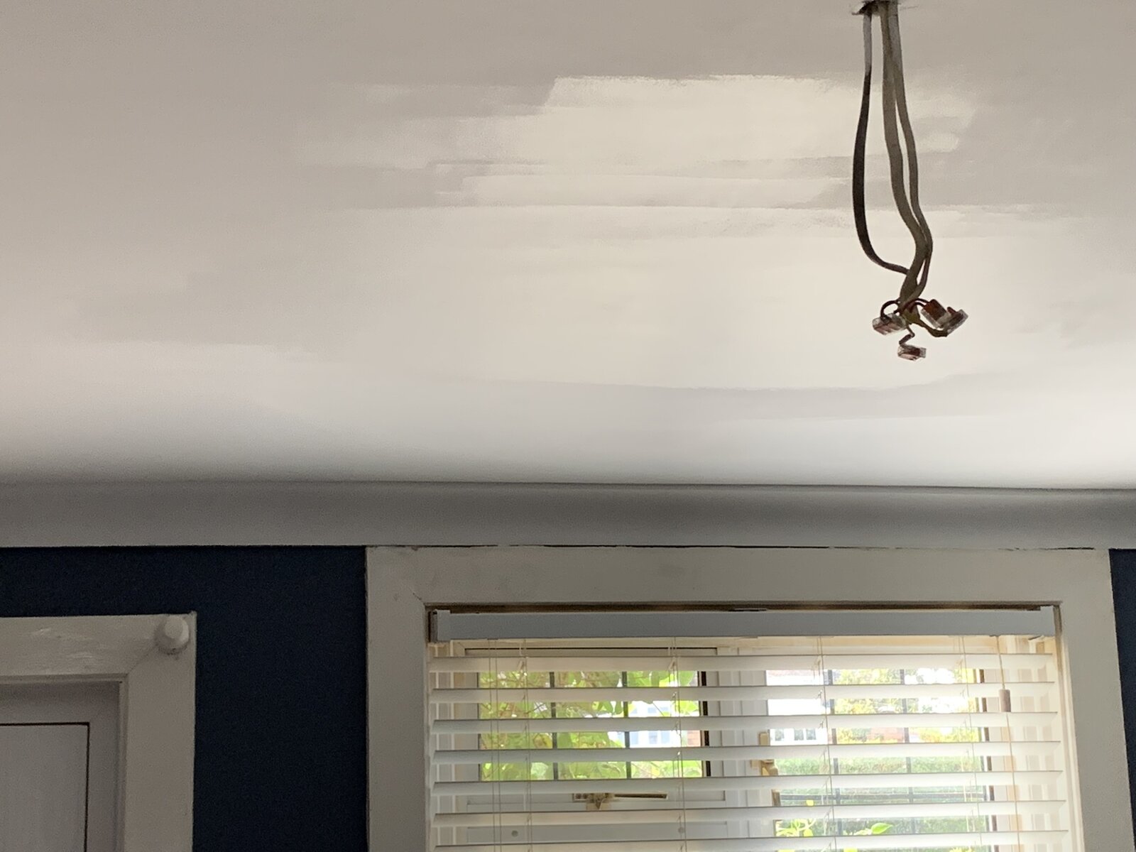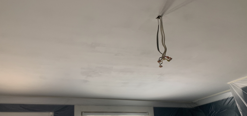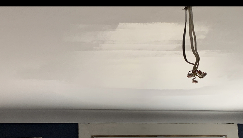 I have a newly boarded and plastered Ceiling. (Done a few months back.) I have painted the ceiling in total, six times but I can’t get rid of the patches you in the image.