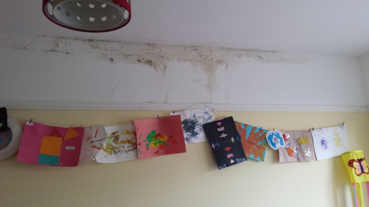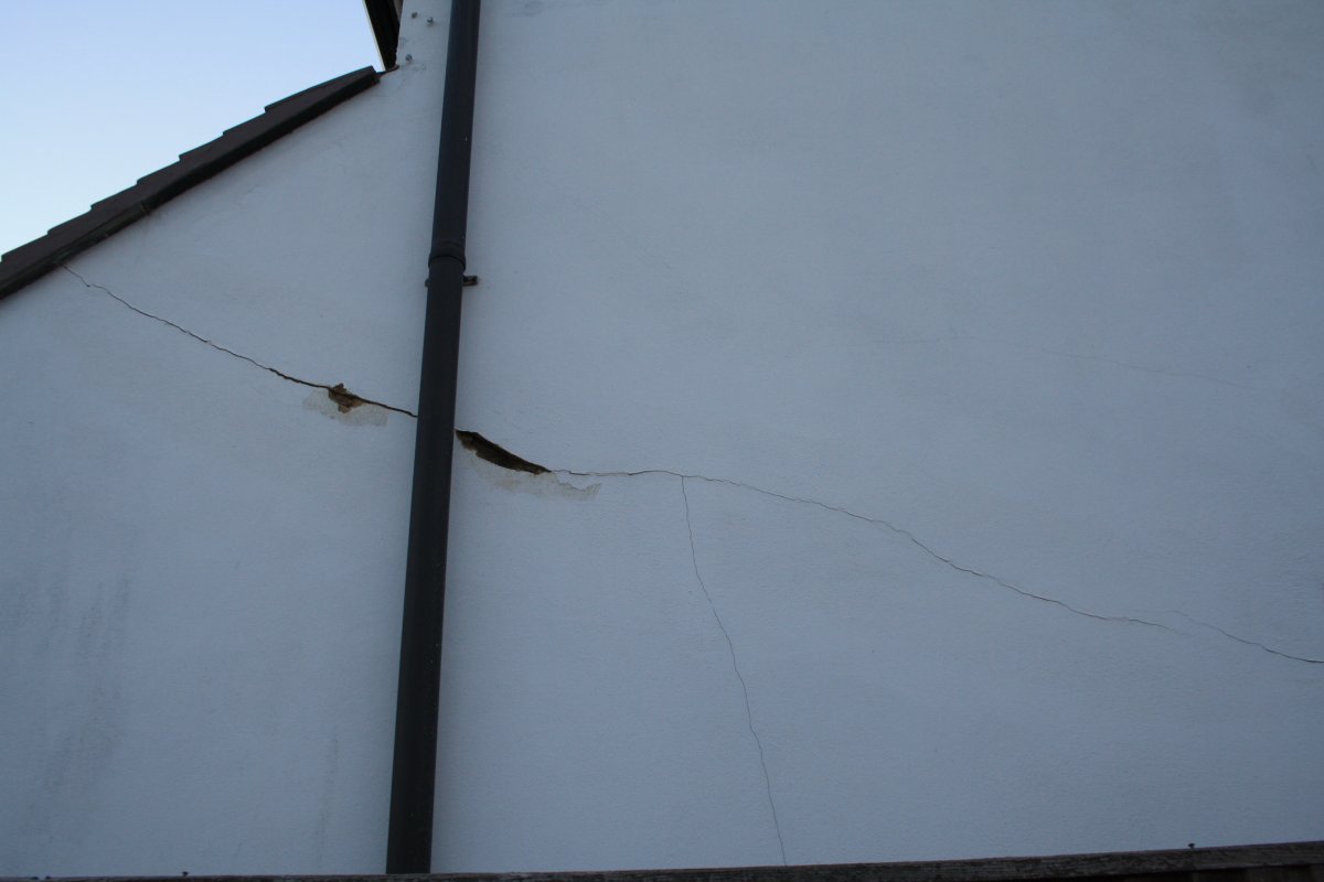There is a localised damp patch inside the house on a downstairs external wall near the ceiling. The problem is not evident upstairs and there are no water pipes in that area of the house. On the outside of the wall in the same area as the damp there is a horizontal crack in the render which has some algae in in. When I tap the render near the crack it sounds hollow for about 20cm top and bottom of the crack, but when I took a hammer and chisel to it, even the hollow sounding stuff was quite well attached and took some elbow grease to get it off. I was expecting it to more or less fall off.