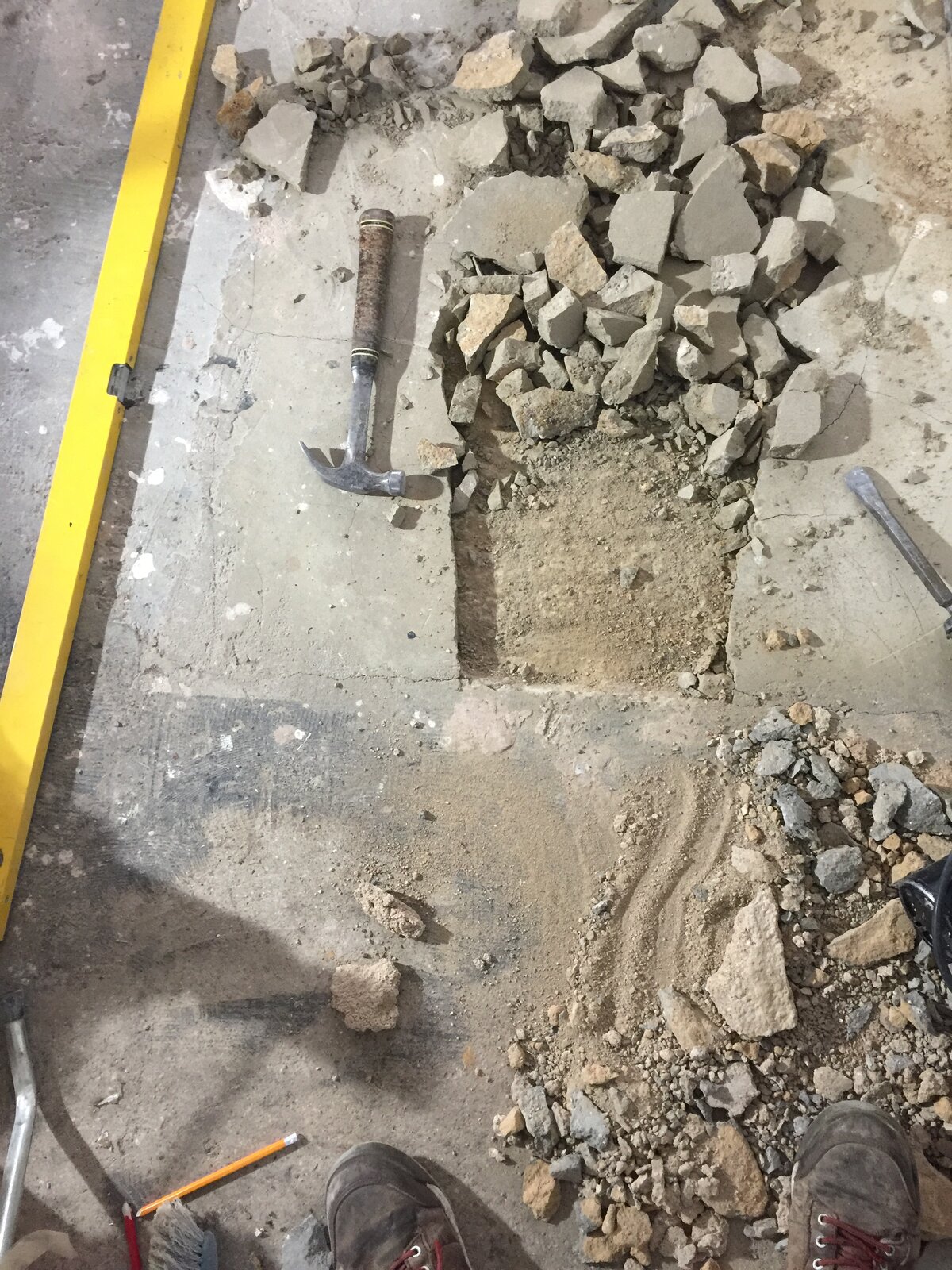There was a patch that had been done before, it had a few cracks and sounded hollow, so I’ve taken it up, it’s chunks of around 25mm that came up.