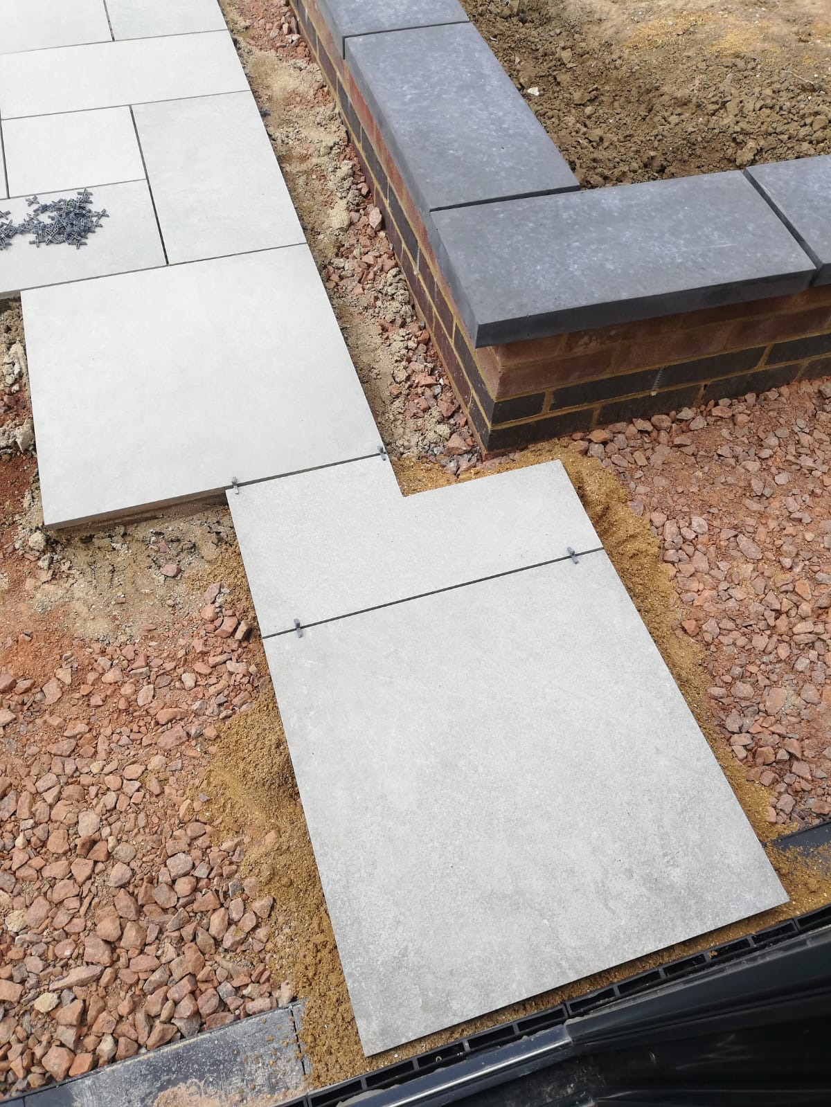 There is a 200mm gravel border round the main patio so the 10mm will only need to come off a small part of the first slab and then each one for about 900mm, the slabs are porcelain so quite hard to cut this precisely. It also leaves a comparatively big gap where it meets the slot drains, joint gaps 5mm gap at slot drain is 15-20mm.