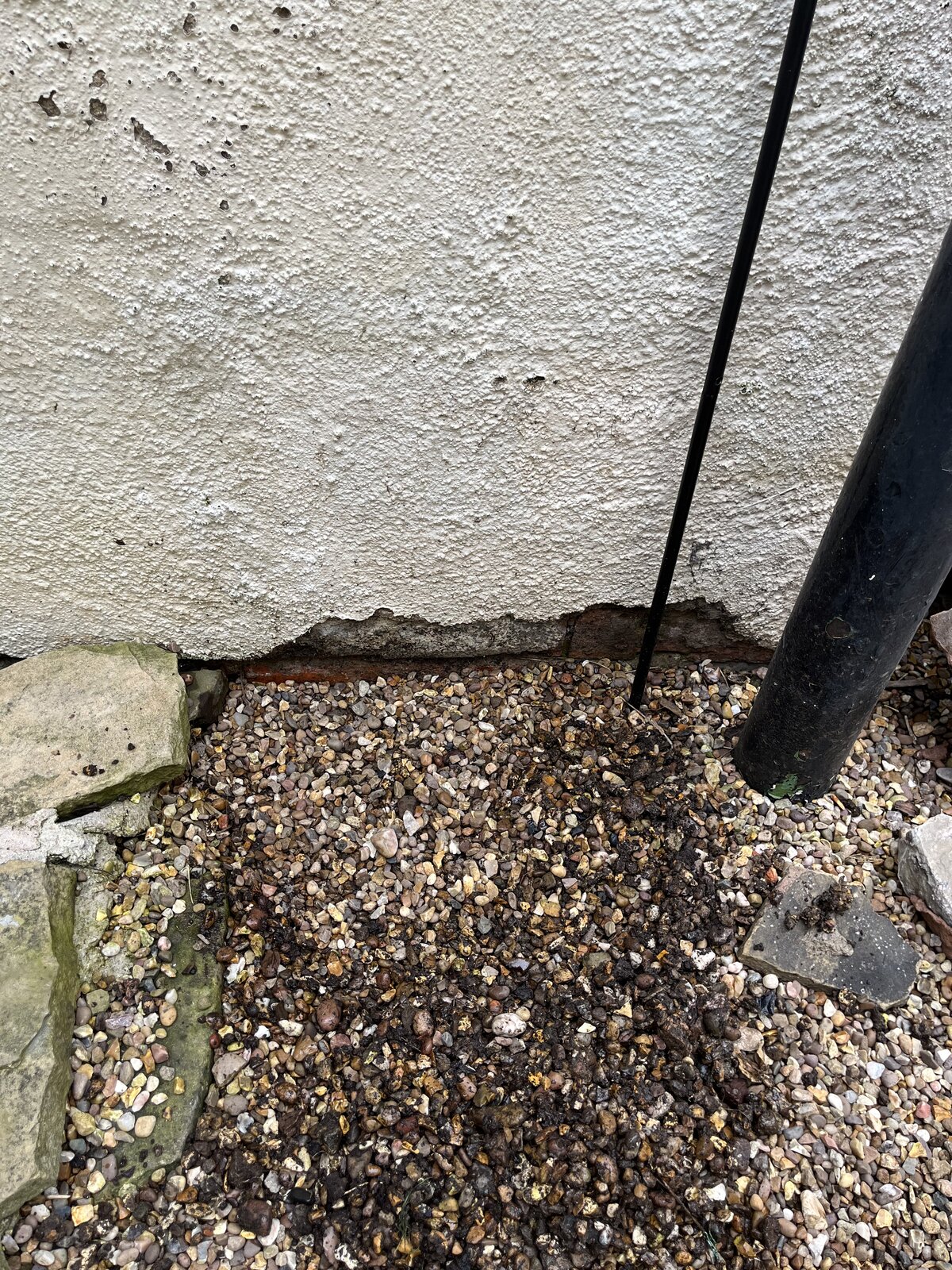 I would like to replace the pebbled area with patio and am trying to find out whether I should keep a border of pebbles or if I would be better putting a drain channel flush to the wall, as already exists on the existing patio section. On removal of the pebbles, I believe the distance between the DPC and the floor is 150mm. The drainage channel I am looking at is 50mm so the distance with the drainage channel would therefore be 100mm, which I understand is below the recommended, but surely this would still be better than the existing pebbles which is barely 50mm below the DPC? Or am I mistaken?