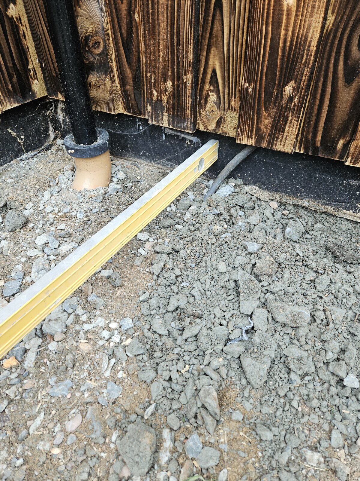 Question, our new patio we're putting in joins onto our shed and will be at the height of the bottom of the spirit level, it's 100mm from the bottom of the shed and the DPM, would it be okay to put the patio in at this height? Should I put in a gravel channel around the outside of the patio between it and the shed? Cheers