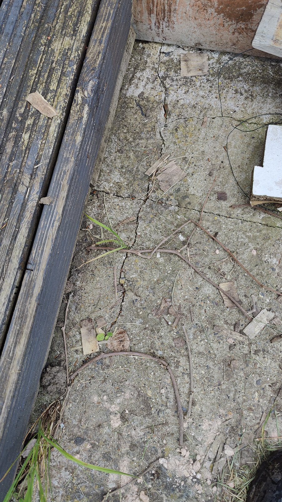 My worry is there are some large cracks and dips / weeds coming through, how should I tackle this area? My current plan is to clear/de-weed lay weed membrane, whack MOT1 50/100mm , then a 50mm mortar bed for the 20mm porcelain slabs + slab primer, fill the surround with gravel.