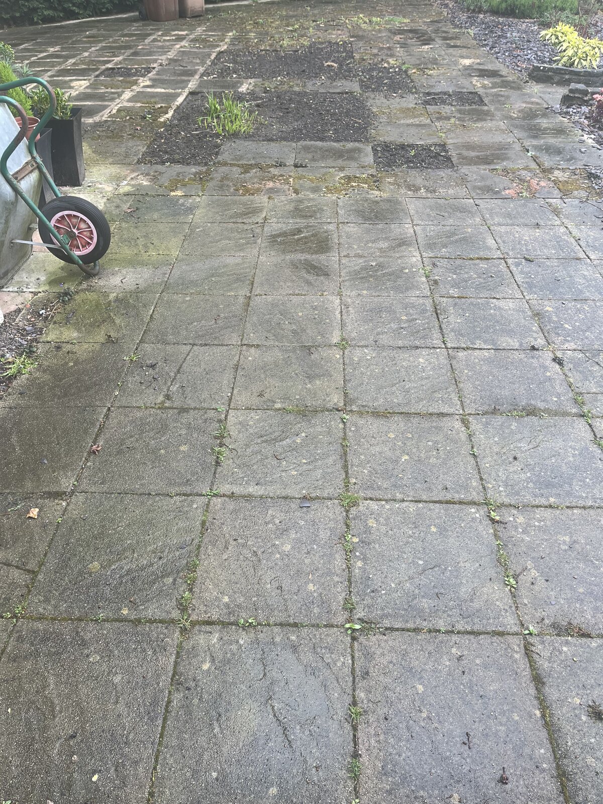 Currently have paving slabs on patio, small section have 450x450 and the rest is 600 x600. Paving slabs have become tired and damaged after many years. Do jet wash every year to clean and make not slippy which I know isn’t ideal as it accelerates the wear and a few are just breaking apart now so I’m looking into options on what I can do to replace and some opinions and advice would be appreciated. For info a lot of the patio is in shade majority of the time which is why algae is rapid, and there are many trees so we do get a lot of leafs and debris fall down in the fall. The area is quite large, I personally don’t mind what I option I go for however want something that will last and not be a haven for weeds. Option one is just replace slabs with news one-probably the easiest in terms of thought, when I calculated costs for just cheap slabs it was coming up to £8k+ not including mortar etc. the second option is replace with porcelain, always got told porcelain is more expensive but finish and quality is better however it appears to be same cost per mtr although imagine the prep and labour is more costly and time consuming. Option 3 is replace with a lawn, option 4 is concrete entire area and option 5 is replace slabs with stone chippings. The stone chippings would be cheaper the. Slabs and easier to install however concerned about discoloration due to algae or rain etc due to damp area and also how to remove leafs as air blower isn’t the best for leafs on chippings. I have a couple of slated areas that get a fair amount of leafs on that I blow off and pick out in the fall, still get weeds from seeds being dropped on top from trees etc but I just pick these out. Don’t mind doing that once/twice a year on small area but on a bigger area I’m not sure plus would I have to clean the stones periodically? If I went for slabs they will still need to be jet washed when dirty so I think what ever option I go for there is always going to be time consuming maintenance that needs doing. Current paving isn’t mortar jointed (butt jointed!) so majority of rain water runs off, if replaced with stone chippings is the rain water going to cause a problem as it is effectively just going to absorb where it is and not run off. You will see in pic some soil squares which is where I lifter slabs up that got too damaged and put some soil down for some plants. For info When lifting the slabs they had a dollop of mortar in each corner and middle and appeared to be played upon compacted mot base-assume base is to correct depth etc think from what I’ve gathered mortar in corners of slabs is ok but for porcelain in would have to be a bed of mortar. House damp proof membrane is about 100mm above current paving slabs