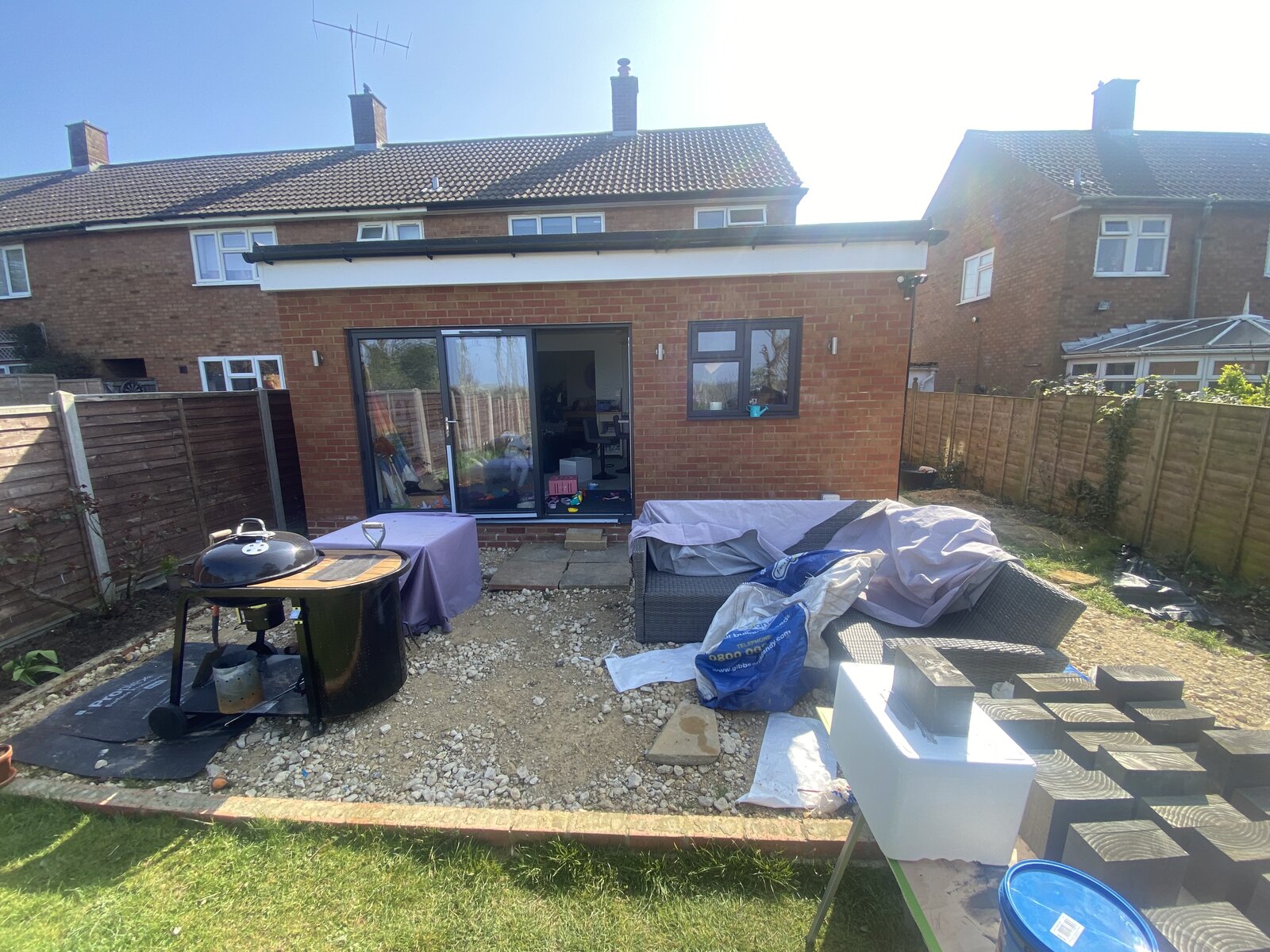 We’ve had an extension done but want to level off and concrete around the side and back to make it level for the little ones.