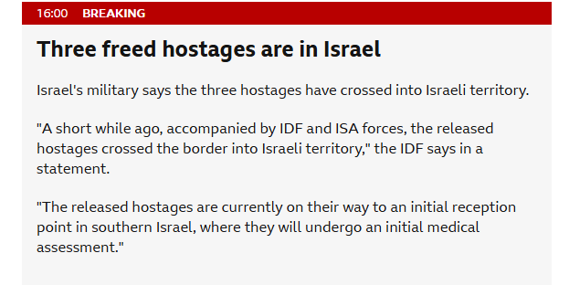 There you go.Israel to release 90 hostages, including women and children, in return.