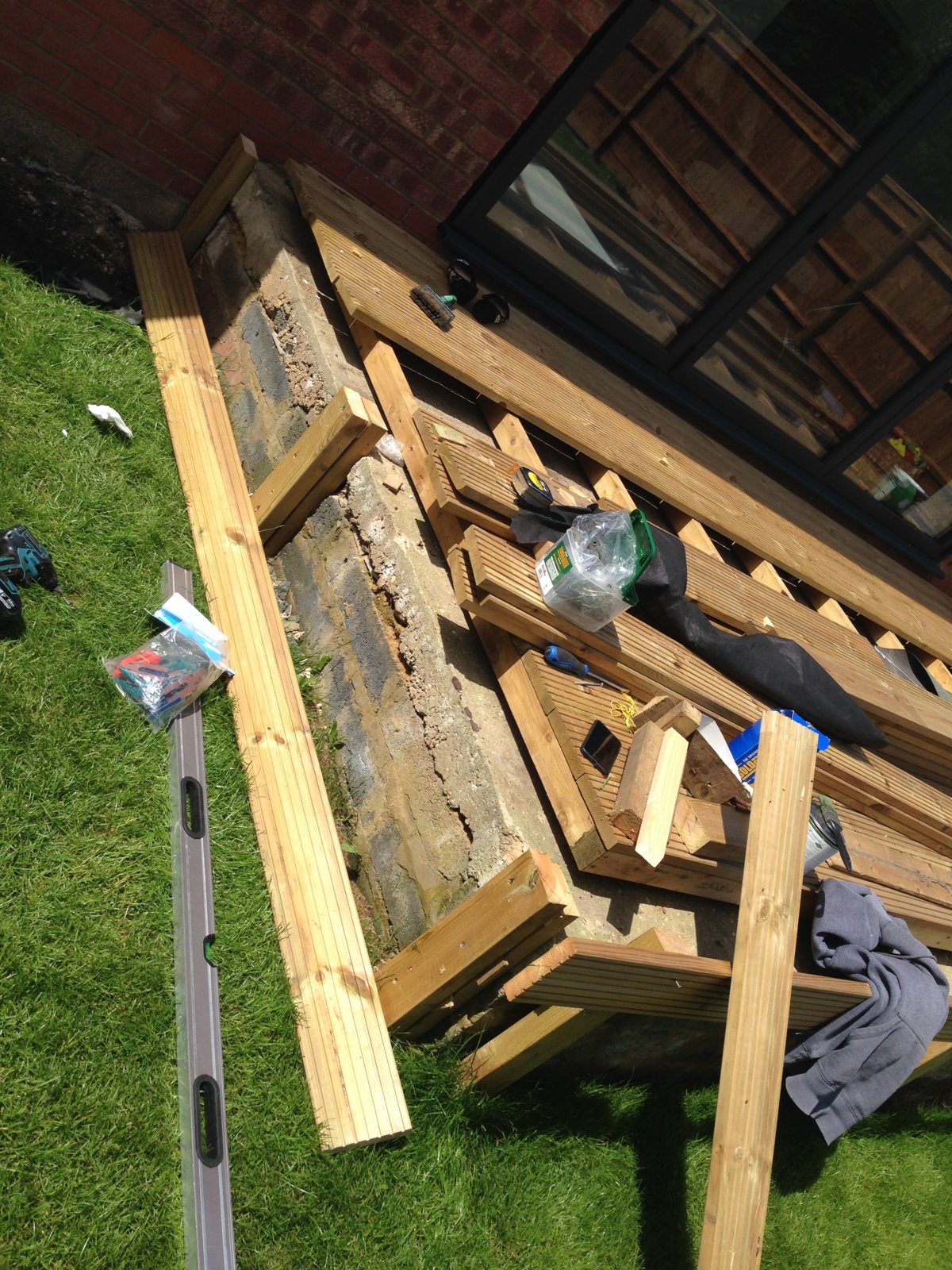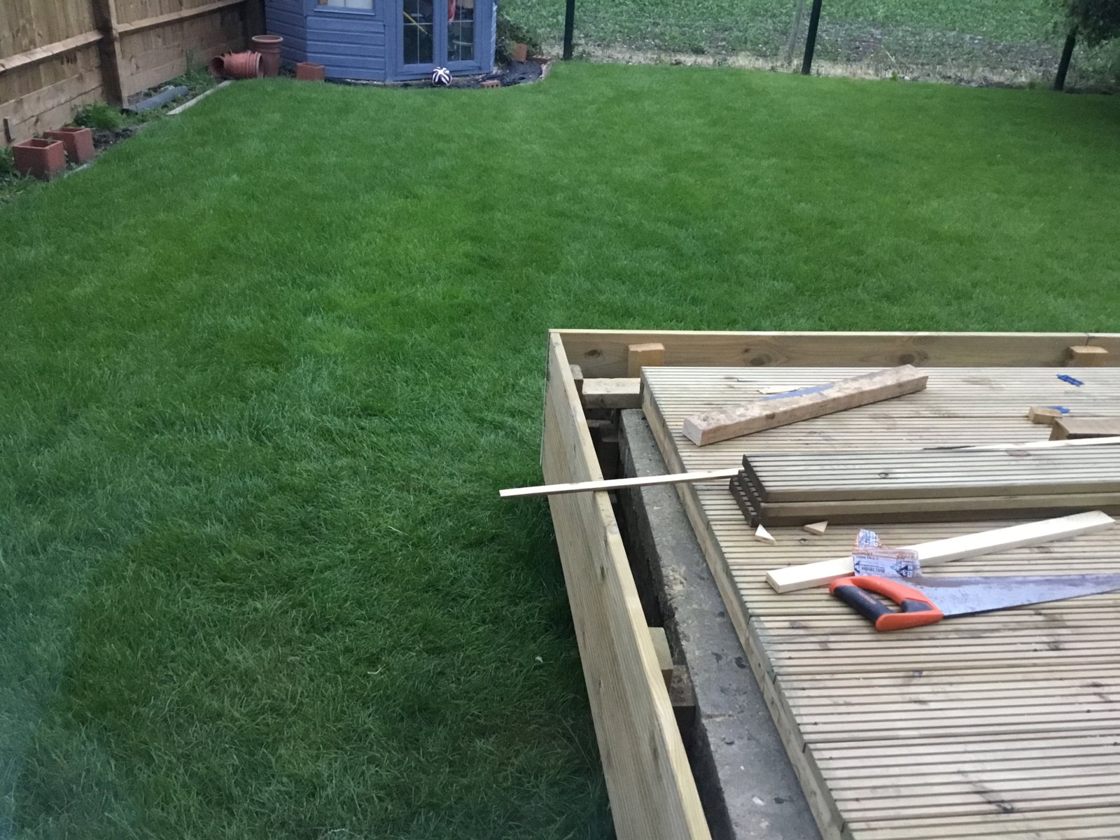 My decking has been fitted to joists that sit on a block and concrete structure that was built to give me the desired height. When I came to build the decking I noticed that the base was not square.