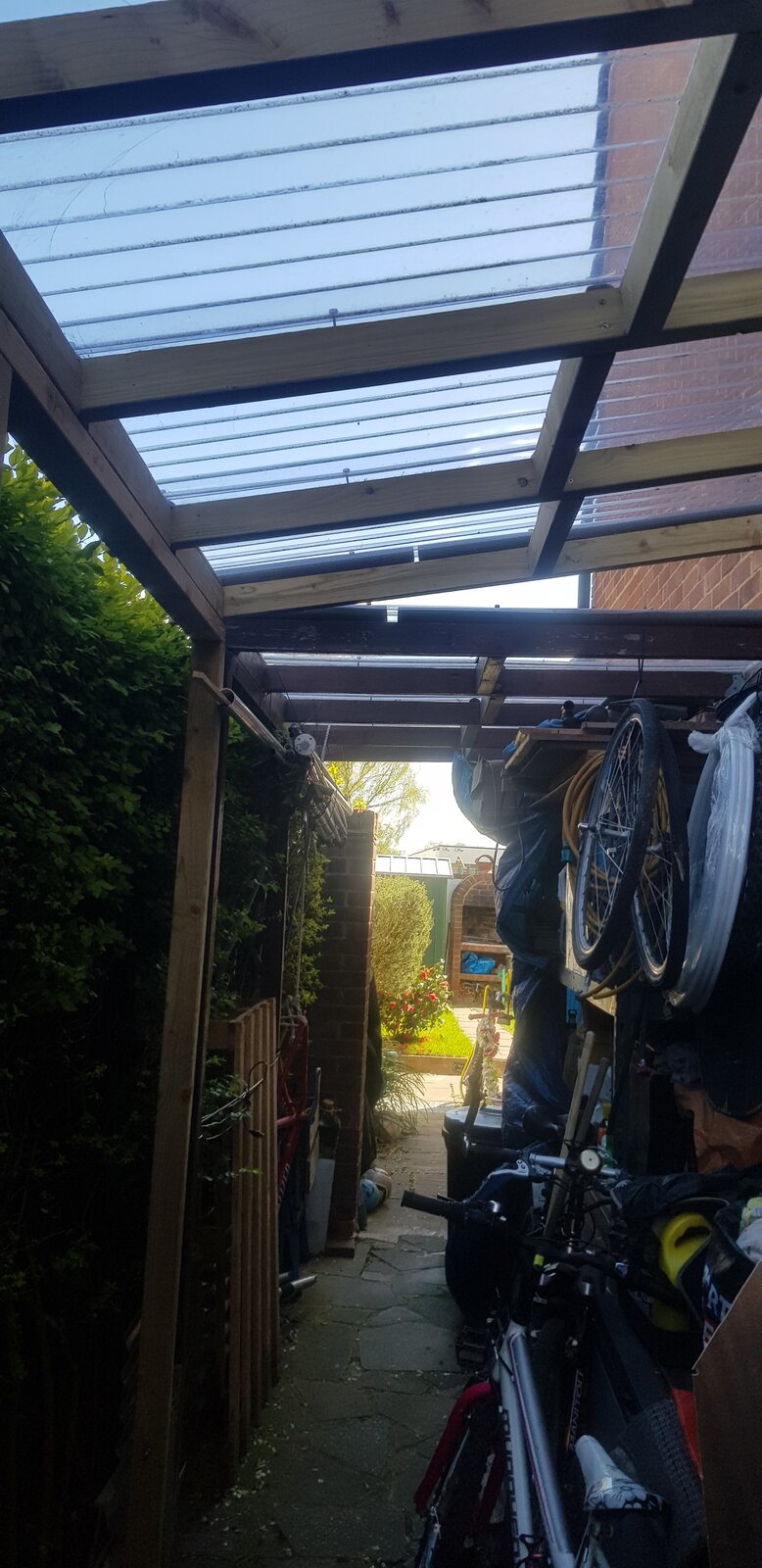 I am in the process of a landscaping project at home and i have created a space that we want under cover, i plan on using corrugated bitumen sheets as the roof so nice and light.