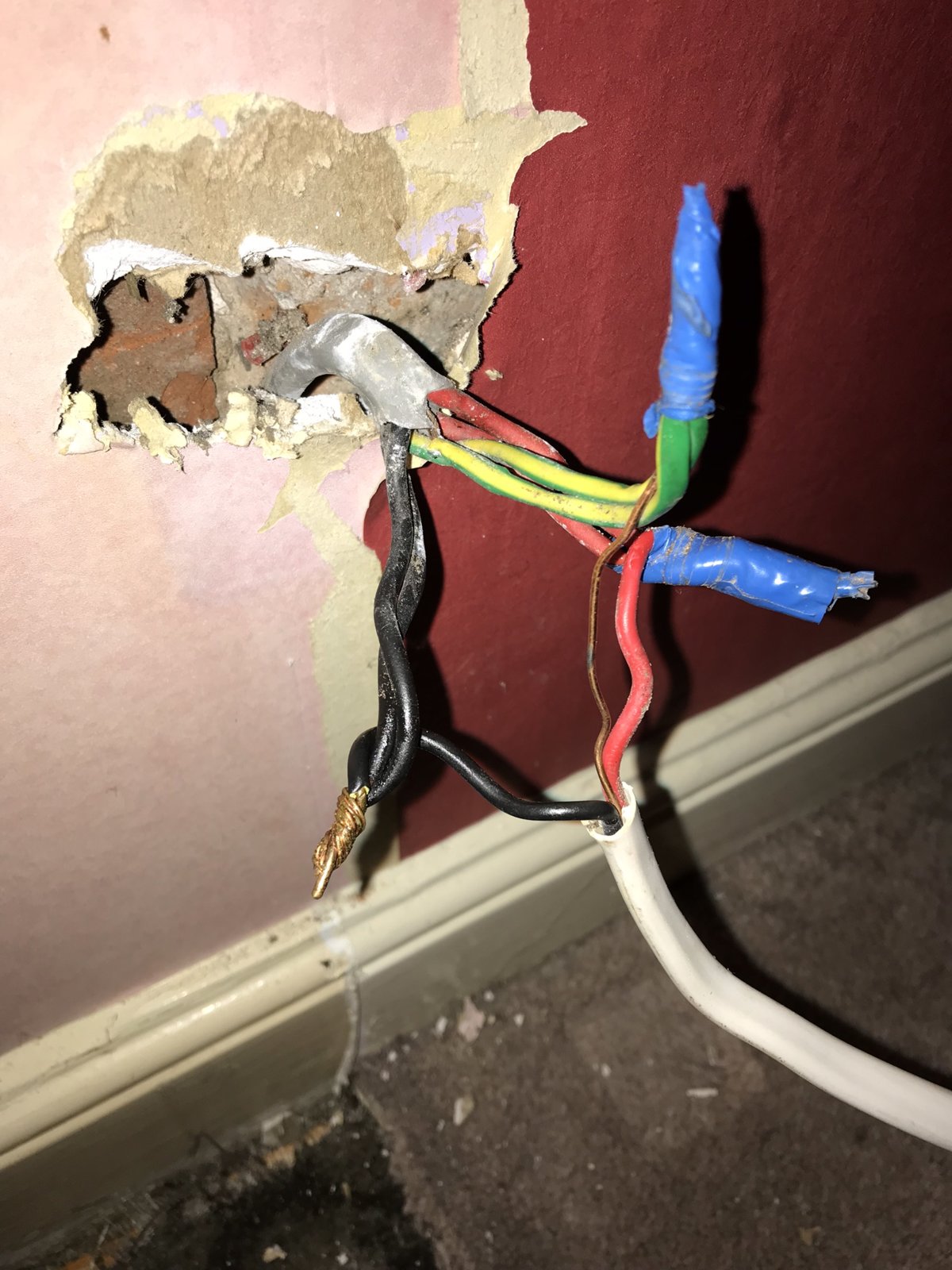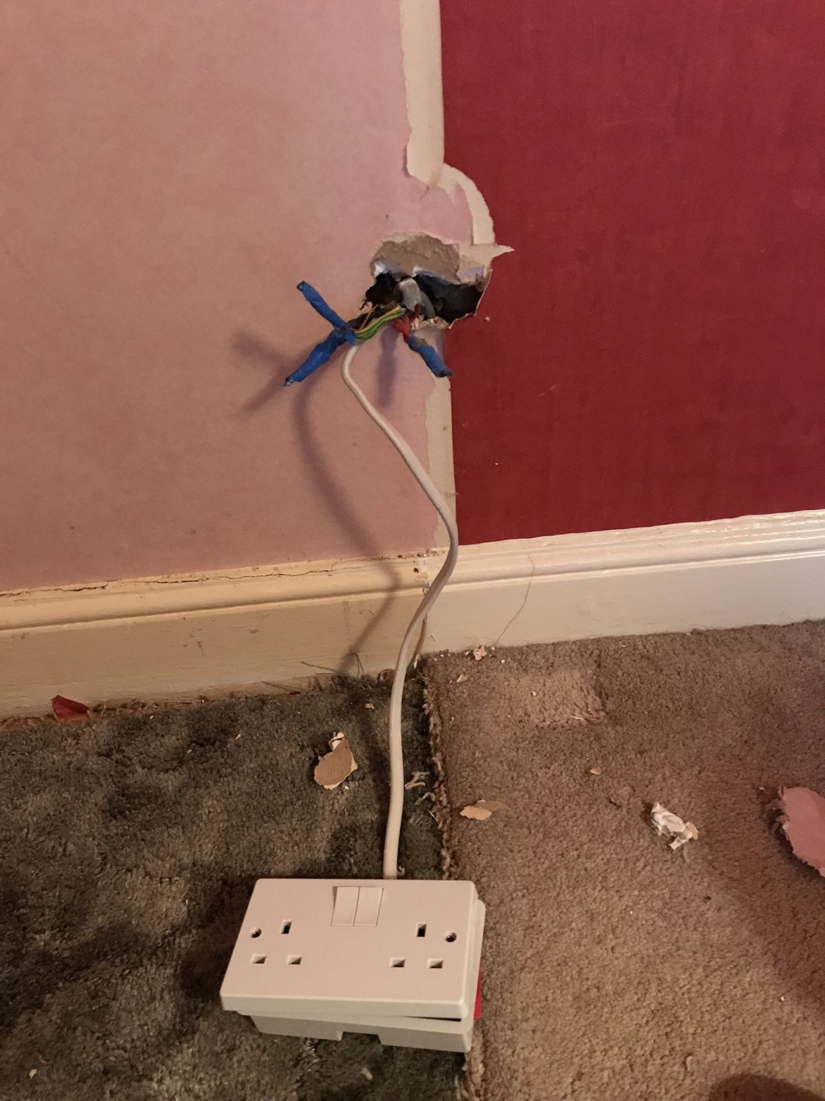 So I removed a built in sideboard/cupboard in the bedroom of mums Victorian house, it had a socket fitted inside and obviously that needed to be relocated. So this is what I found!