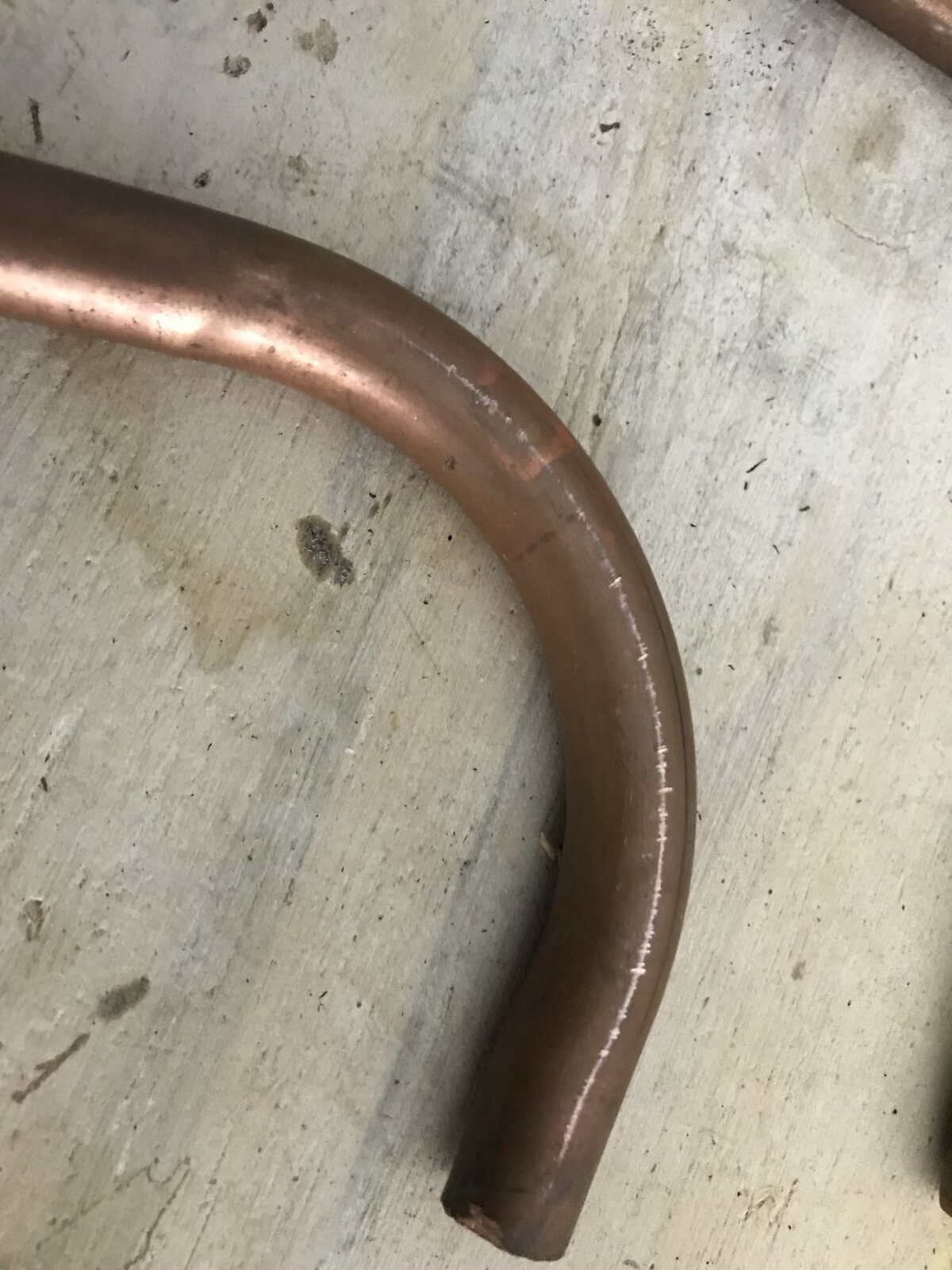 So I've done some test bends on some old bits of pipe, but I'm getting pitting (bits of silvery colour not copper) along the side of the pipe from where the pipe sits in the former (see pics).