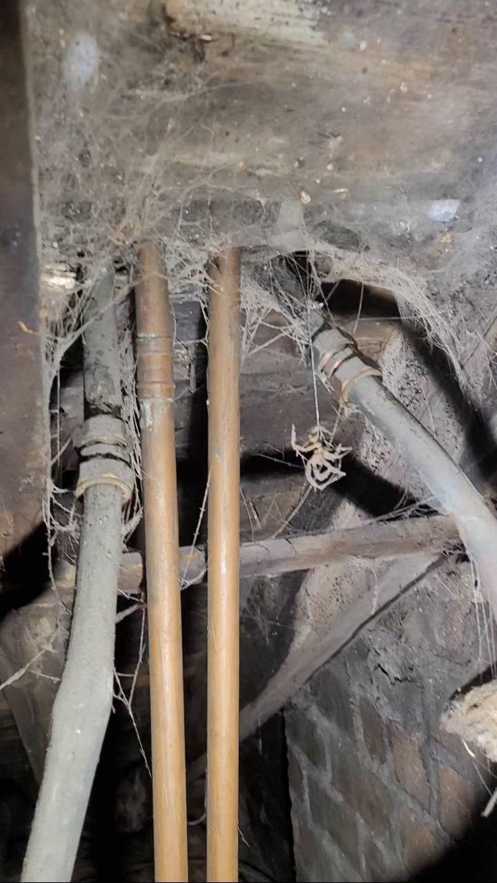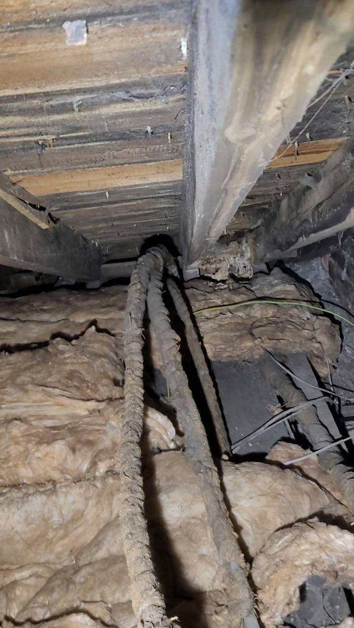 The second and third pictures were taken in the attic, the final 2 are under the floorboards and then running down the wall (there are a few more running down the wall to the left of that, but I haven't made a big enough hole to photograph them all).