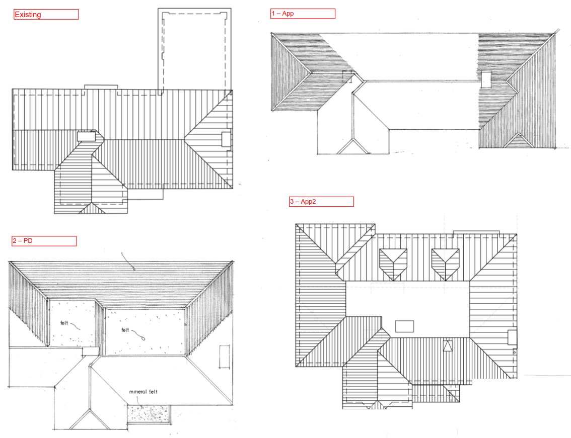 [Existing, App, PD & 2nd App & roof plans attached]