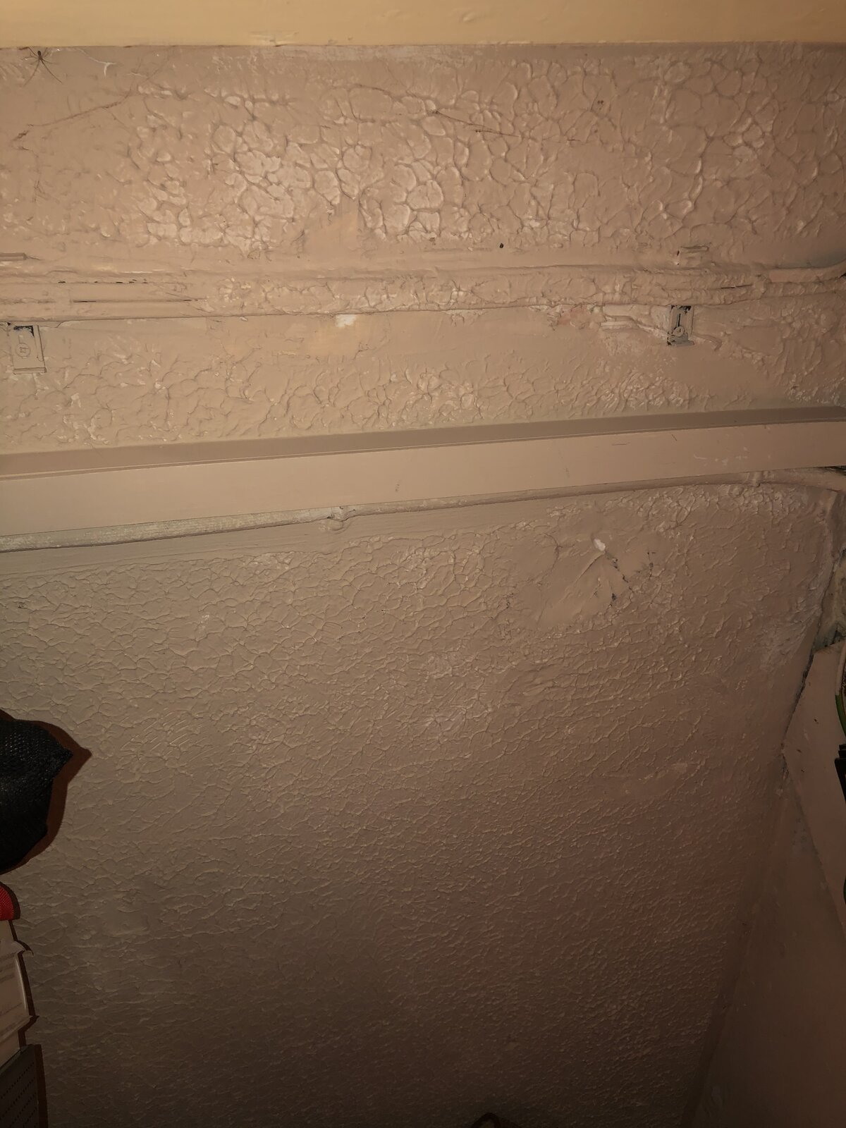 Unsure if this under stair ceiling has asbestos in it. When we got the house, there was no mention of potential asbestos in the under stair. Should I proceed in putting a plaster skim?