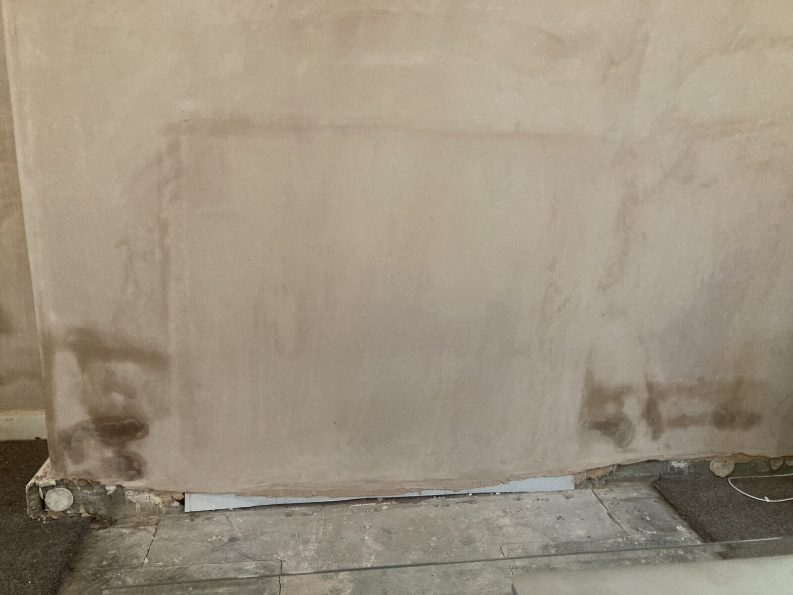 However, today there has been no rain but I have had the wallpaper steamer out again and noticed the two patches appear again. But then, when I turned off the steamer and let some air in it changed back very quickly. I’m guessing it is just moisture in the air clings to those two particular areas - but, any idea why? And whether, when I get the room skimmed next week, I should knock those two areas off and have them replastered? Or are they not doing any harm?