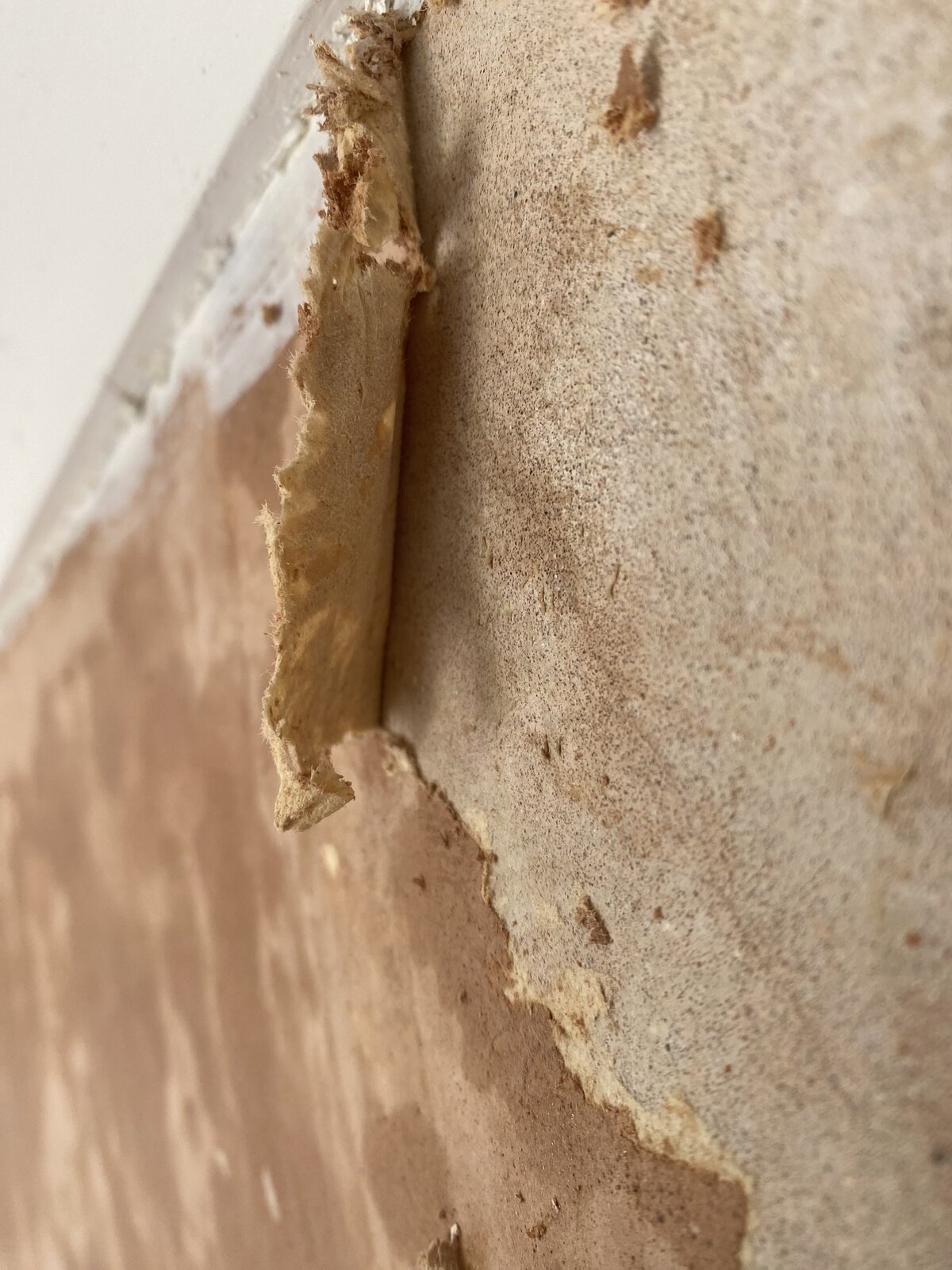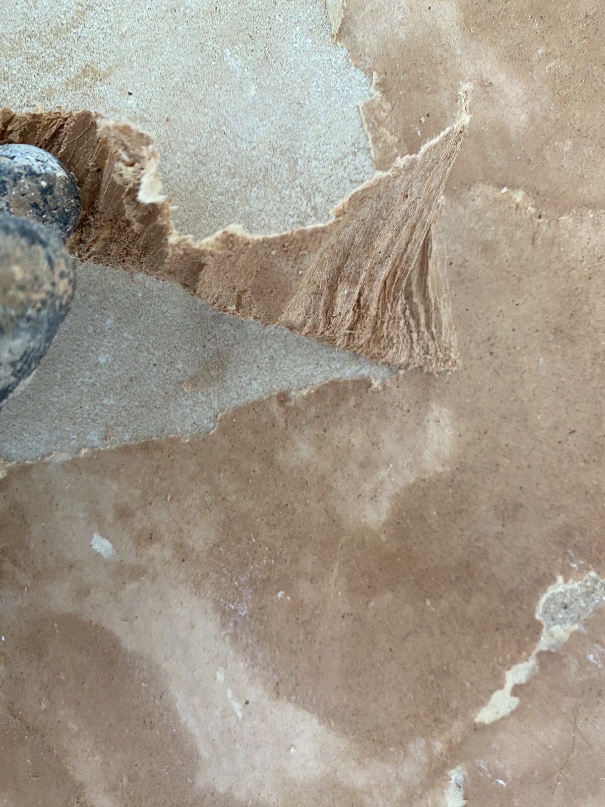 I’ve scraped these sections of plaster/paper off until it reaches a point where the paper seems to end and I’m just taking off the top coat plaster.