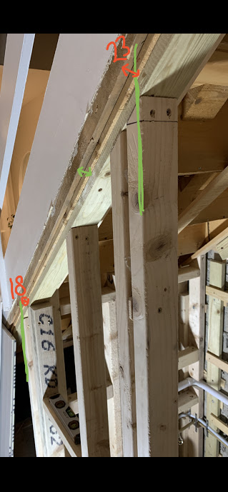 About to plasterboard a stud wall under my stairs (cloakroom WC). As you can see there is a lip of the stairway protruding past the studs..deliberately to allow plasterboard and skim. Call it poor planning or just a wonky stairs but I incorrectly assumed the protruding edgeswas same distance from the studs all the way down...of course it is not. It goes from a 23mm protrusion down to about 18.5/19mm.